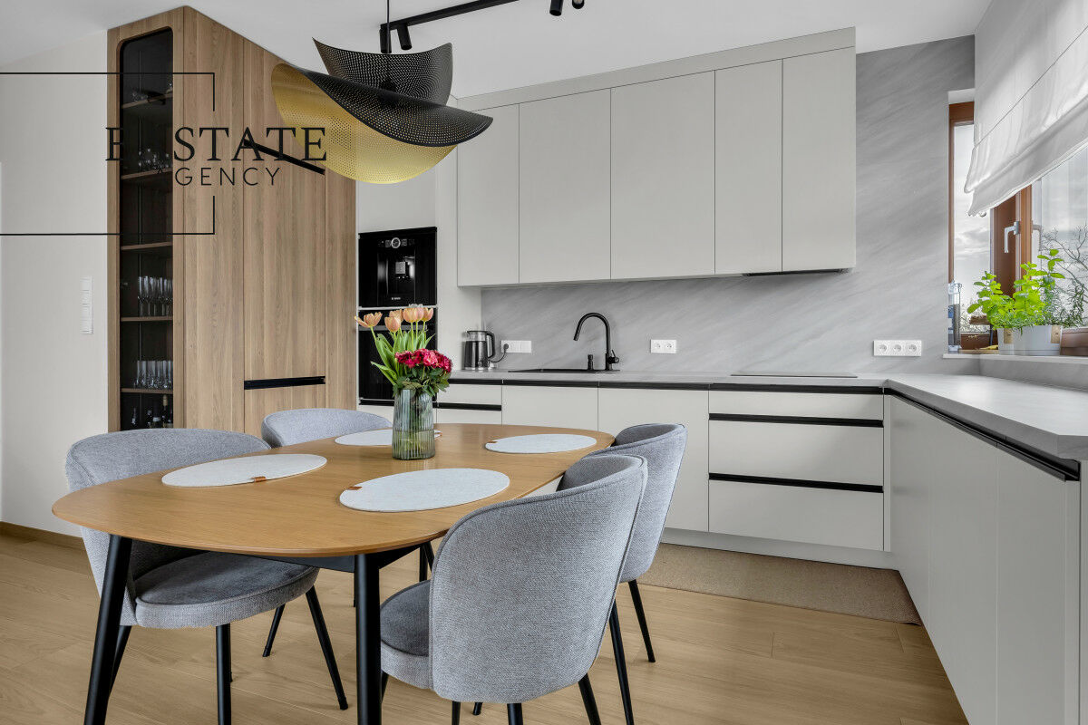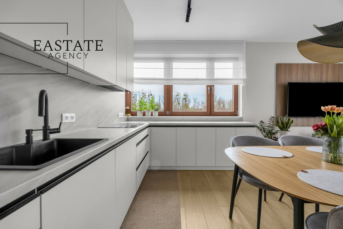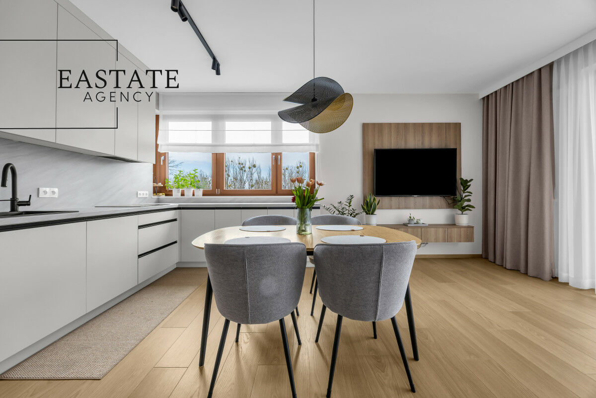 - Przestronny salon połączony z aneksem kuchennym oraz wyjściem na duży balkon.