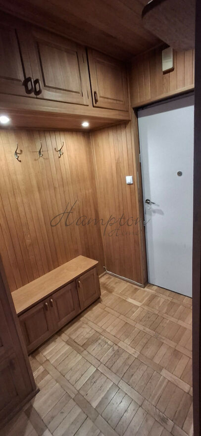 Przedsionek mieszkania, z którego możemy wejść do obszernego dużego pokoju, jest w klasycznej drewnianej zabudowie. W pokoju znajduje się wyjście na mały balkon (na balkonie zamontowany jest klimatyzator). Pomieszczenie to ma ekspozycję wschodnią, jest pięknie naświetlone, a widok z jego okna obejmuje pół miasta.
