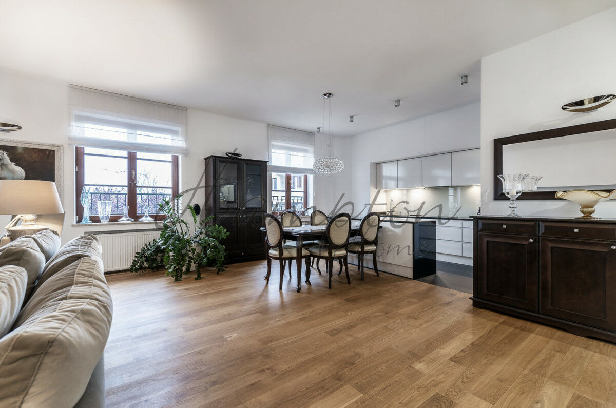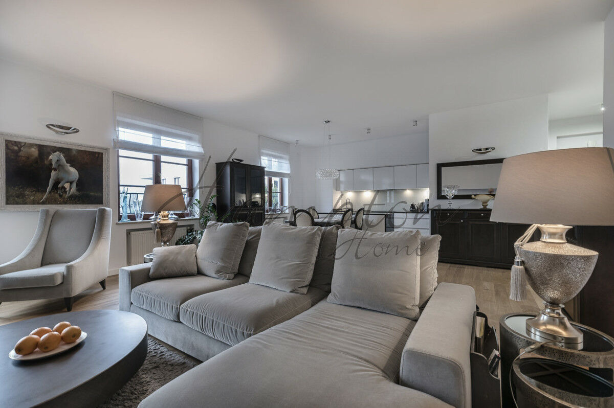 Apartament to 117 m2 nowoczesnej, wysokiej jakości powierzchni mieszkalnej do wygodnego i spokojnego życia. Przestronna i słoneczna część dzienna, na którą składa się salon z 3 dużymi oknami, z balkonem francuskim oraz otwartą kuchnią. Strefa nocna oddzielona jest dodatkowym korytarzem, który zapewnia prywatność tej części mieszkania.