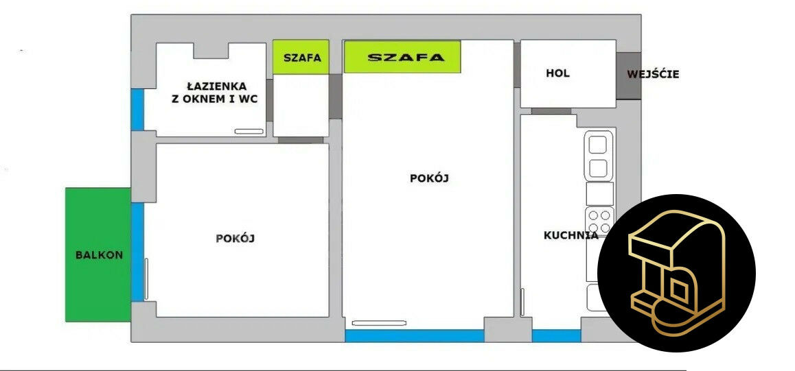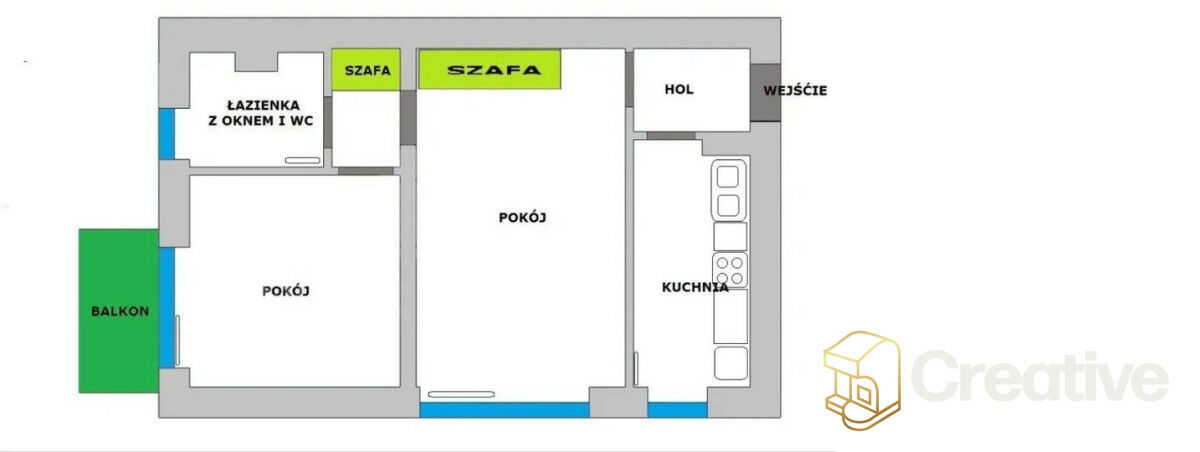 Mieszkanie o powierzchni 37,60m2 składa się z: