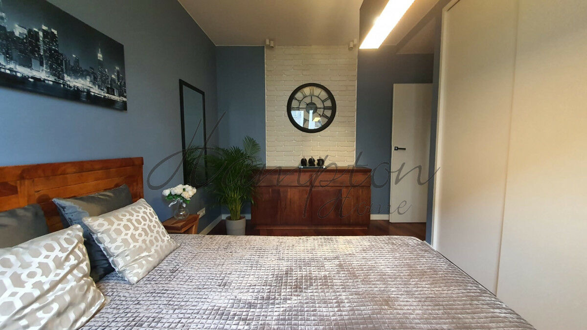 • Ustawna sypialnia z dużą szafą niczym garderoba