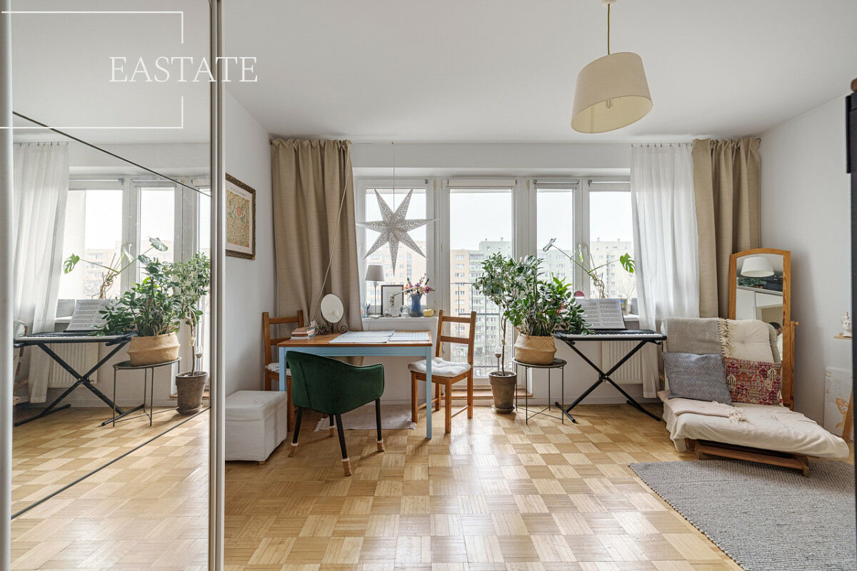 Zapraszam do zapoznania się z ofertą komfortowego, Studio mieszkania o powierzchni 31.57 m², zlokalizowanego na cichym osiedlu przy ul. Zygmunta Modzelewskiego 40 na Warszawskim Mokotowie, tuż przy Galerii Westfield Mokotów.Nieruchomość znajduje się na siódmym piętrze z dziesięciu w zadbanym i modernizowanym budynku z 1989. Mieszkanie jasne, z okien rozpościera się widok na korony drzew.