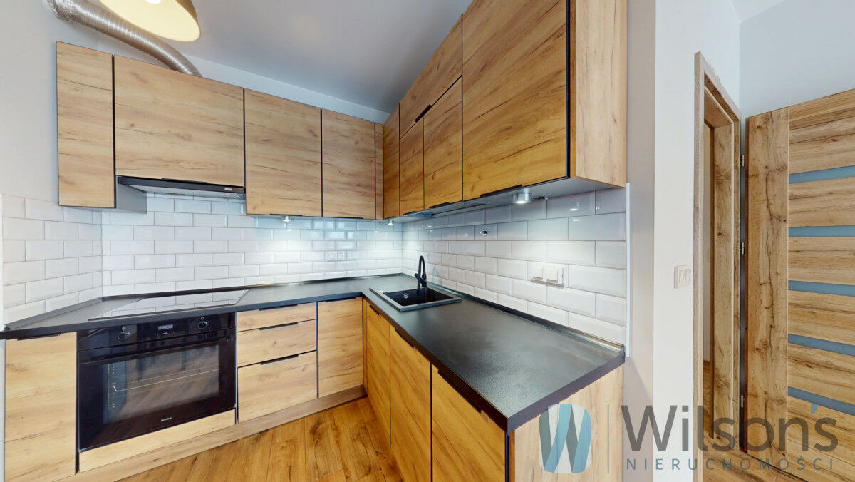 W pełni wyposażony aneks kuchenny: płyta indukcyjna, piekarnik, lodówka, zmywarka - wszystko, czego potrzebujesz