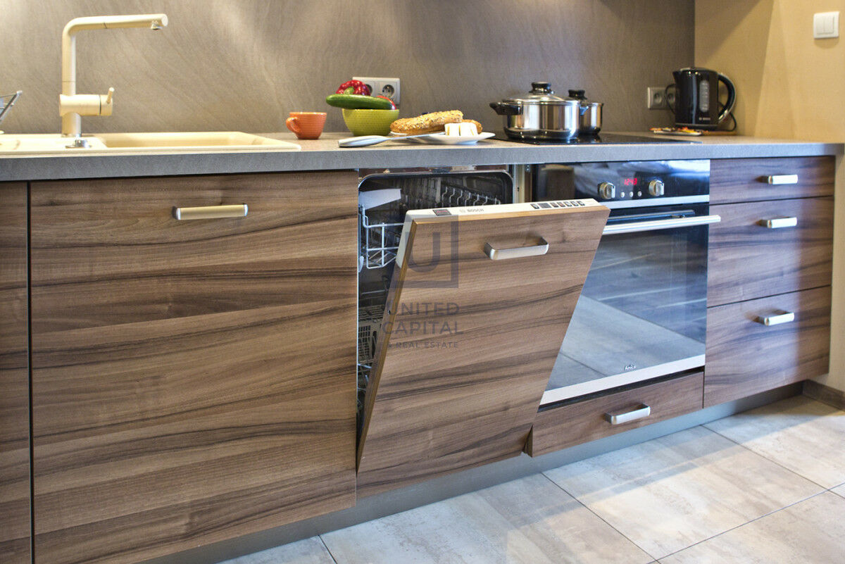 - Aneks Kuchenny wyposażony w: zmywarkę, płytę indukcyjną, piekarnik, zabudowaną lodówkę wraz z zamrażalnikiem. Aneks kuchenny w pełni wyposażony w sprzęty oraz akcesoria kuchenne
