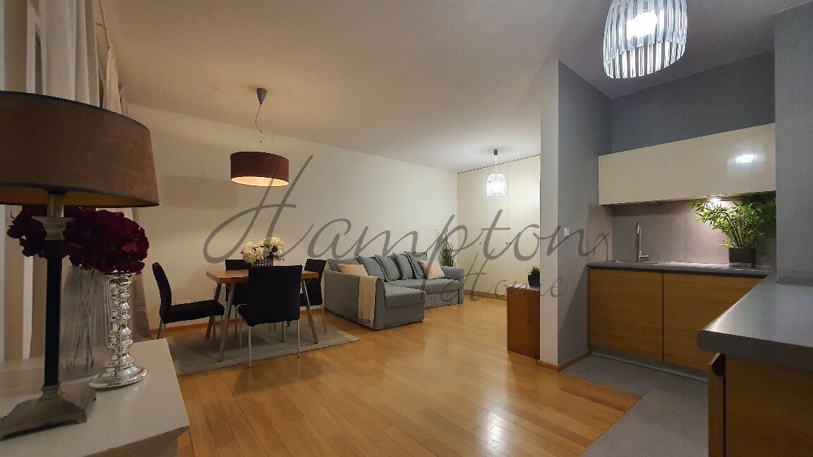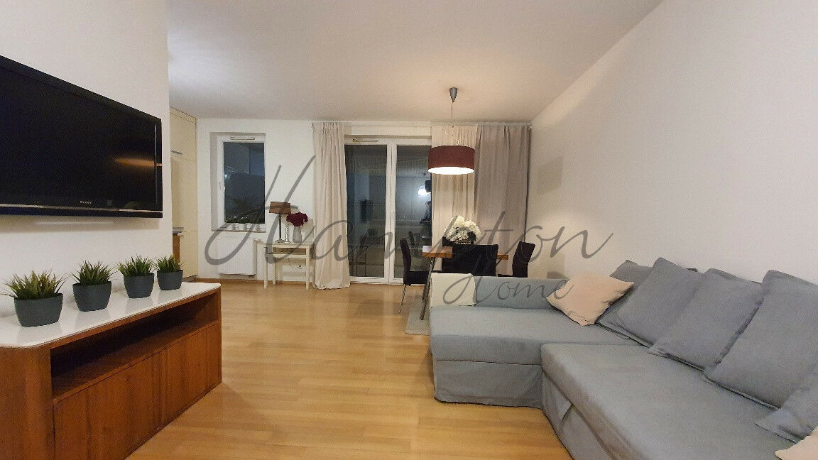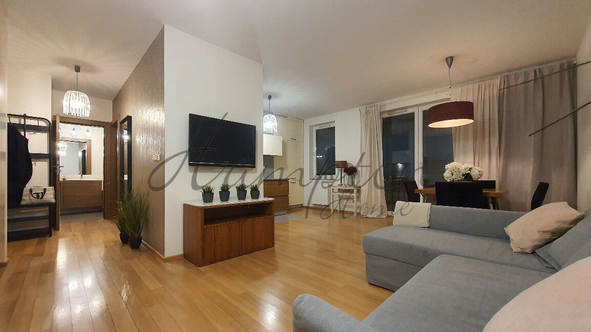 Beautiful, bright two bedroom apartment with a terrace and open view, located in the prestigious Marina Mokotów residential complex, with an underground garage and excellent access to the city center.