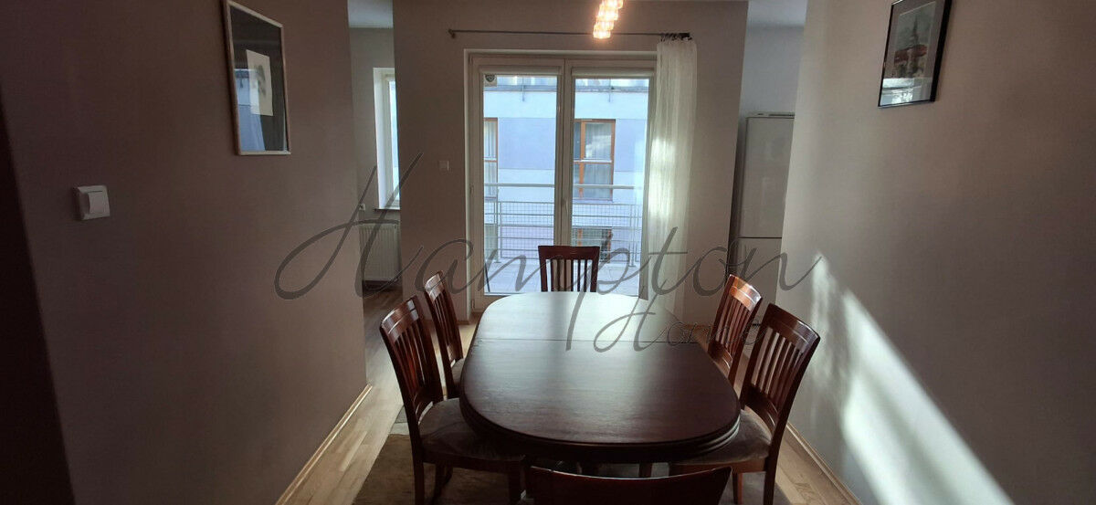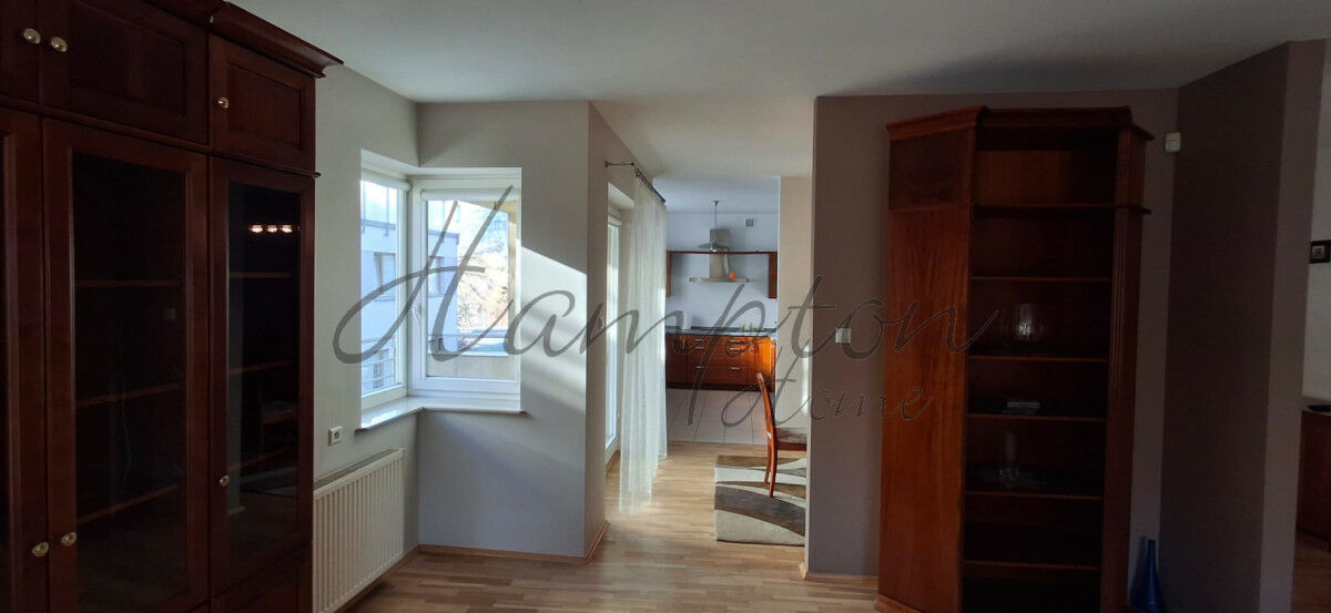 Oferujemy do wynajęcia niezwykle przestronne i eleganckie mieszkanie o powierzchni 116m2, z dwoma balkonami i jednym lub dwoma podziemnymi miejscami postojowymi.Mieszkanie składa się z trzech pokoi, czyli dwóch przestronnych sypialni oraz otwartego i jasnego salonu, z którego można przejść amfiladowo przez jadalnię do półotwartej kuchni.