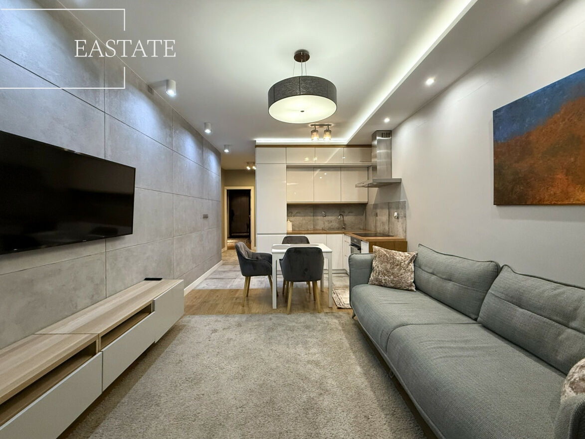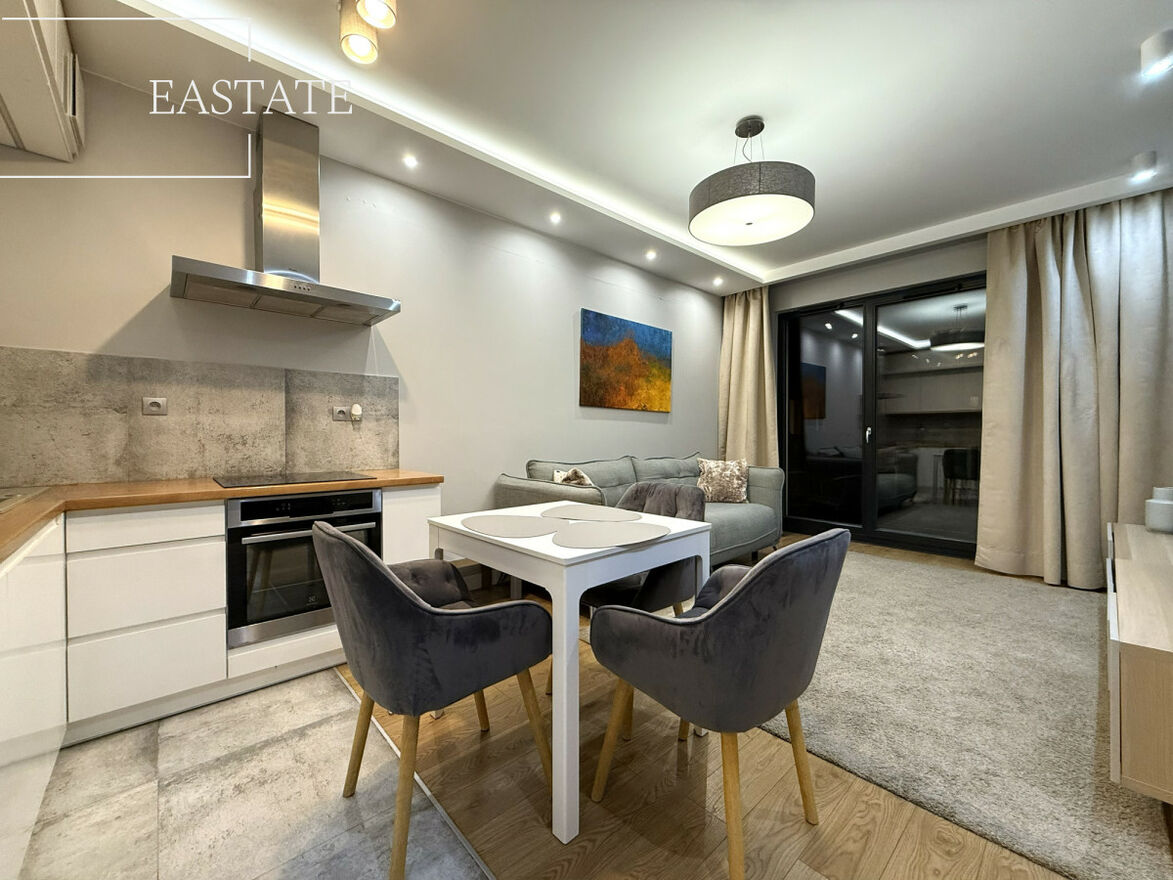 Mieszkanie w pełni umeblowane i wyposażone w niezbędne sprzęty RTV AGD, tj. lodówka, płyta indukcyjna, zmywarka, piekarnik, pralka, dwa telewizory, wideo- domofon. Wykonane z dbałością o każdy detal, wyróżnia się stylem i jakością odpowiadającą całemu budynkowi i okolicy.