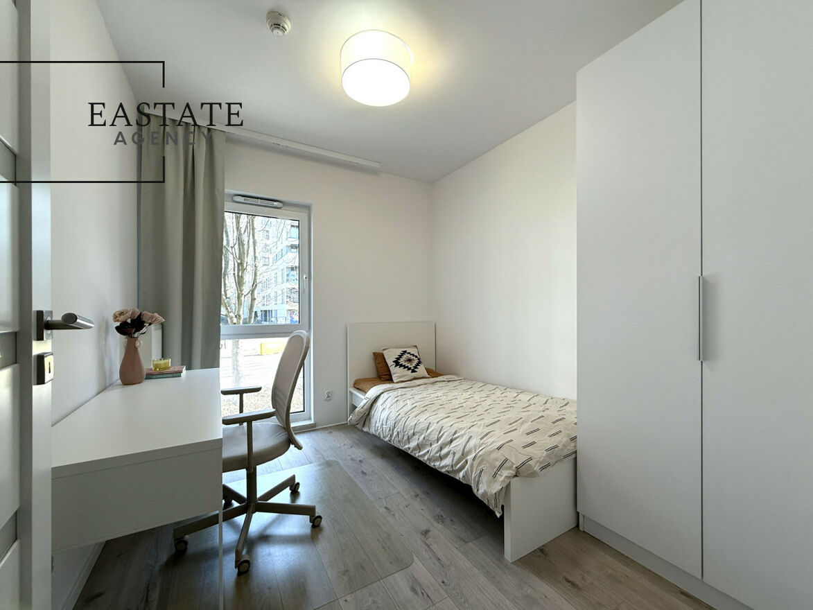 There are numerous amenities nearby: grocery stores (Biedronka, Żabka), cafés, bakeries, restaurants, parcel lockers and a fitness club.