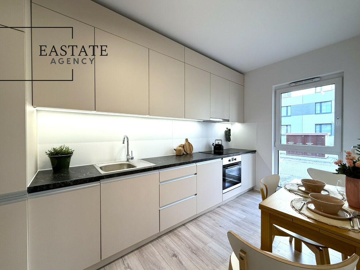A bright and functional 3-room apartment (55.7 m²) located on the 1st floor of a modern building (2021), in the business heart of Mokotów - Suwak 11 street, near Konstruktorska. The area combines excellent transport connections with a მშვიდ and quiet atmosphere.