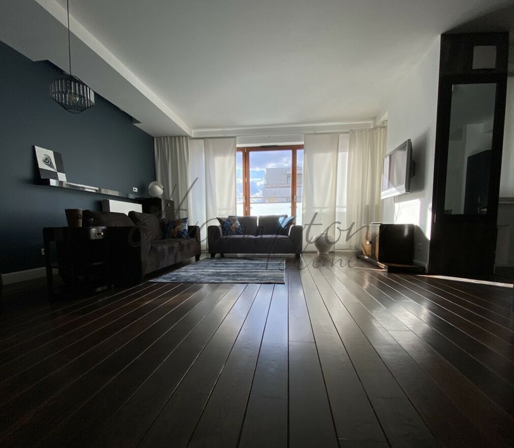 Hampton Home oferuje na wynajem przestronny apartament o wielkości 103 m2 z dwiema sypialniami. Mieszkanie znajduje się na drugim, ostatnim piętrze w apartamentowcu o niskiej zabudowie na strzeżonym, zamkniętym osiedlu Marina Mokotów.Apartament o podwyższonym standardzie składa się z: