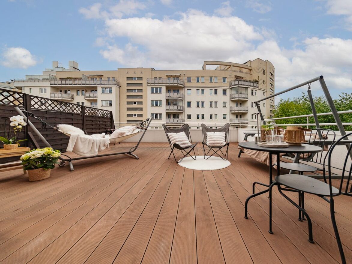 Lokal wyróżnia się nie tylko funkcjonalnym układem, ale również imponującą przestrzenią zewnętrzną - do mieszkania przynależą aż dwa tarasy o łącznej powierzchni 110 m², idealne do relaksu, spotkań z bliskimi czy stworzenia zielonej oazy w sercu miasta.