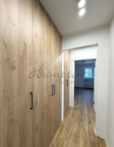 Remont obejmował wymianę wszystkich instalacji, podłóg oraz pełne, staranne wykończenie. W kuchni, łazience oraz przedpokoju wykonano wysokiej jakości zabudowę na wymiar przygotowaną przez stolarza.