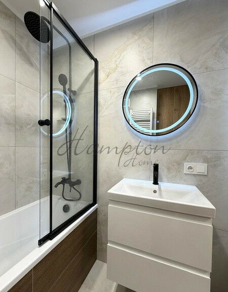 W kuchni znajduje się zabudowa z wysokiej klasy sprzętem AGD marek Bosch i Haier. Łazienka wyposażona w wannę z funkcją prysznica.