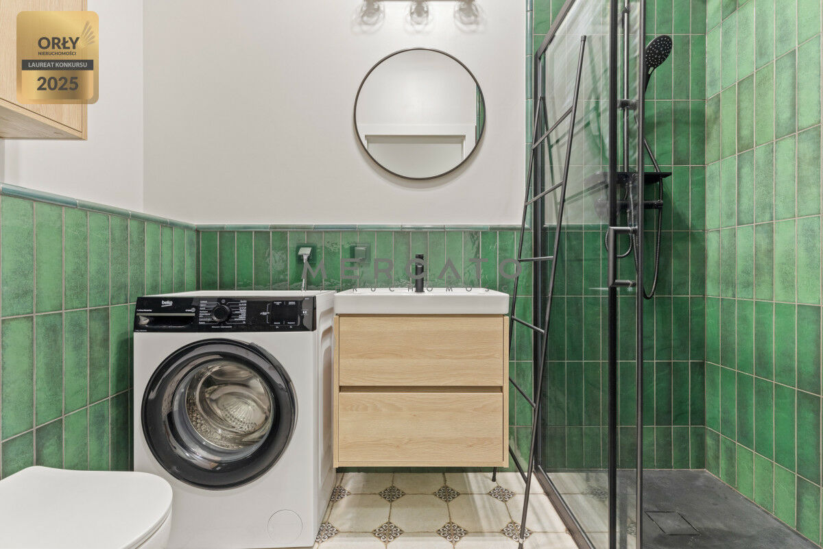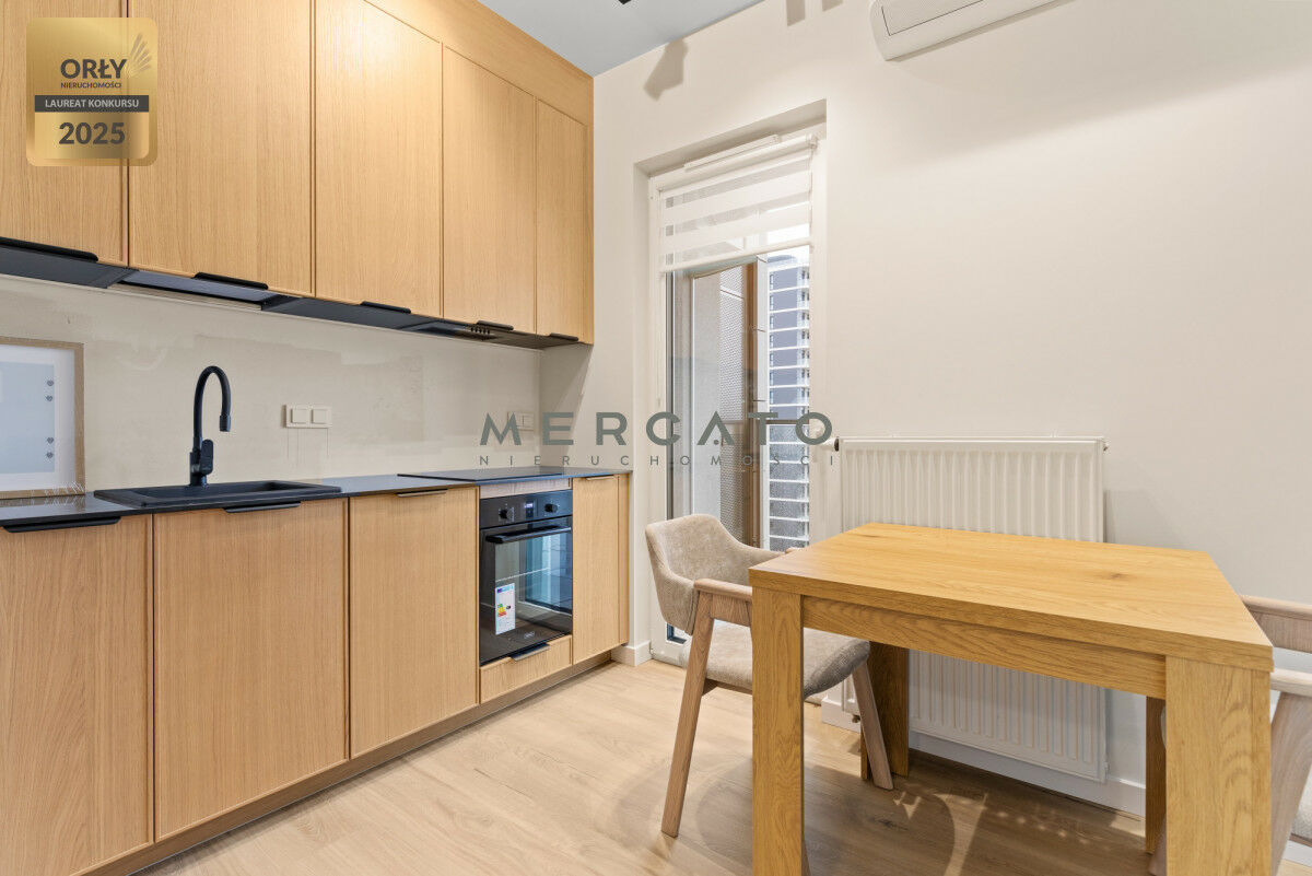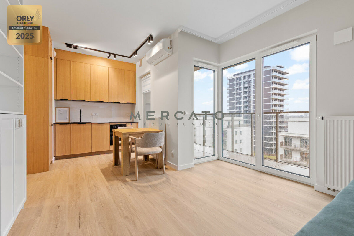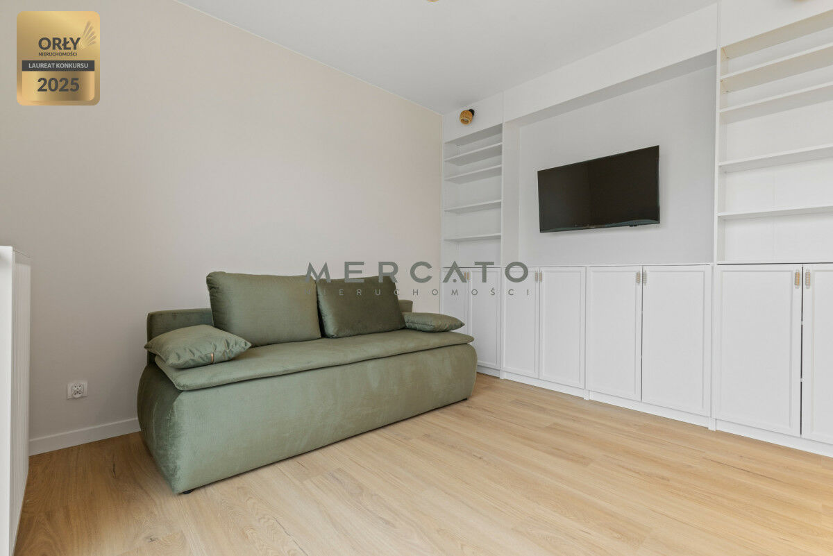 For rent: a modern studio apartment with an area of 28.74 m², located in a very well-connected part of Praga-Północ. The apartment has been finished to a high standard, with great attention to detail, and offers a pleasant view of Warsaw city center.