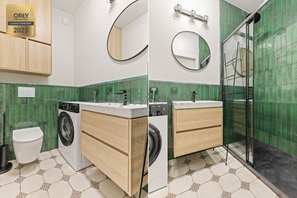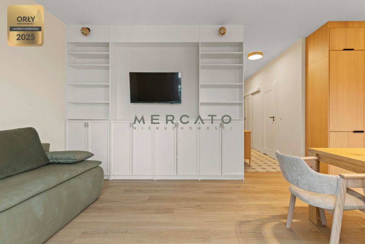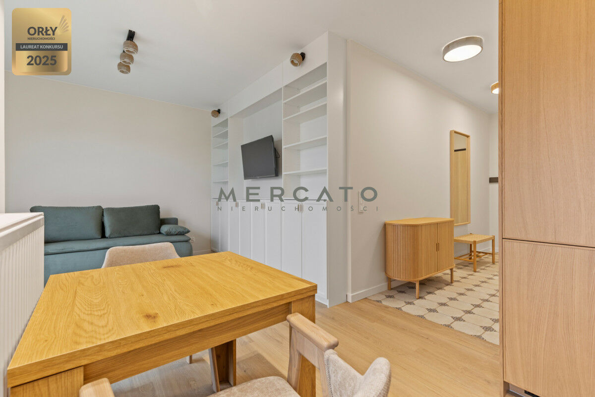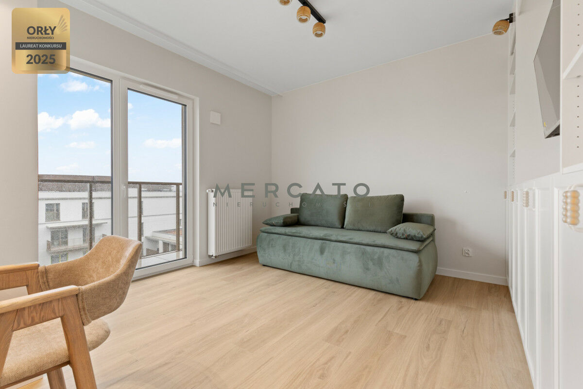 For rent: a modern studio apartment with an area of 28.74 m², located in a very well-connected part of Praga-Północ. The apartment has been finished to a high standard, with great attention to detail, and offers a pleasant view of Warsaw city center.