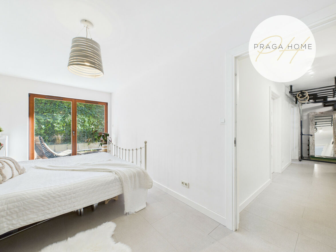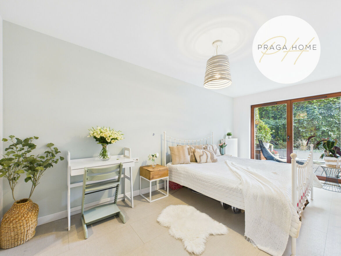 Największa sypialnia posiada własną garderobę oraz prywatną łazienkę, co zapewnia wyjątkowy komfort mieszkańcom. Każda z sypialni ma bezpośrednie wyjście na ogródek przynależny do mieszkania. Ogród został starannie zaaranżowany zielenią, tak by zapewnić pełną prywatność i kameralność.