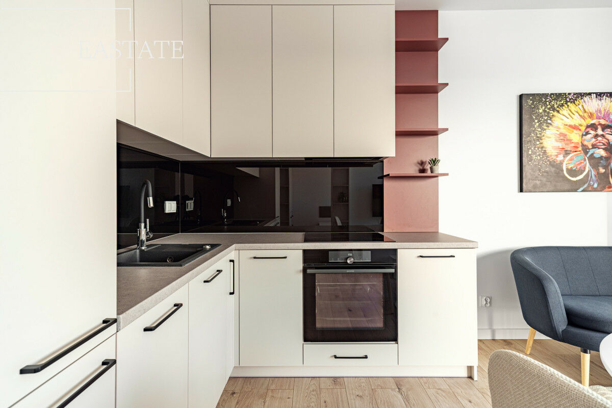 - Pełne wyposażenie RTV/AGD - m.in. telewizor, lodówka, kuchenka indukcyjna z piekarnikiem, zmywarka, pralka