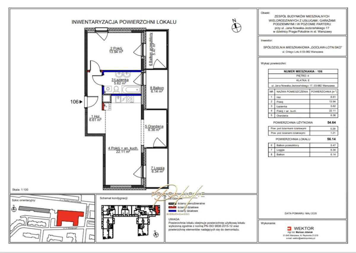 Na sprzedaż mieszkanie o powierzchni 56 m2 w stanie deweloperskim. Inwestycja GOSLOVE powstała przy współpracy spółdzielni mieszkaniowej Gocław Lotnisko oraz Grupy PROFBUD. W czerwcu zostało wydane pozwolenie na użytkowanie a lokale zostaną oddane do końca marca 2026 roku. W skład mieszkania wchodzi salon z aneksem kuchennym, sypialnie, łazienka z wc, hol, dwa balkony + oranżeria. Wschodnia ekspozycja nasłonecznia, oranżeria, lokalizacja oraz wysokość (270 cm) mieszkania to kluczowe atuty tego mieszkania.