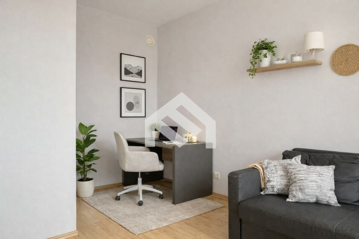 • Pokój dzienny - jasny, wyposażony w rozkładaną kanapę oraz biurko, idealny zarówno do wypoczynku, jak i pracy.