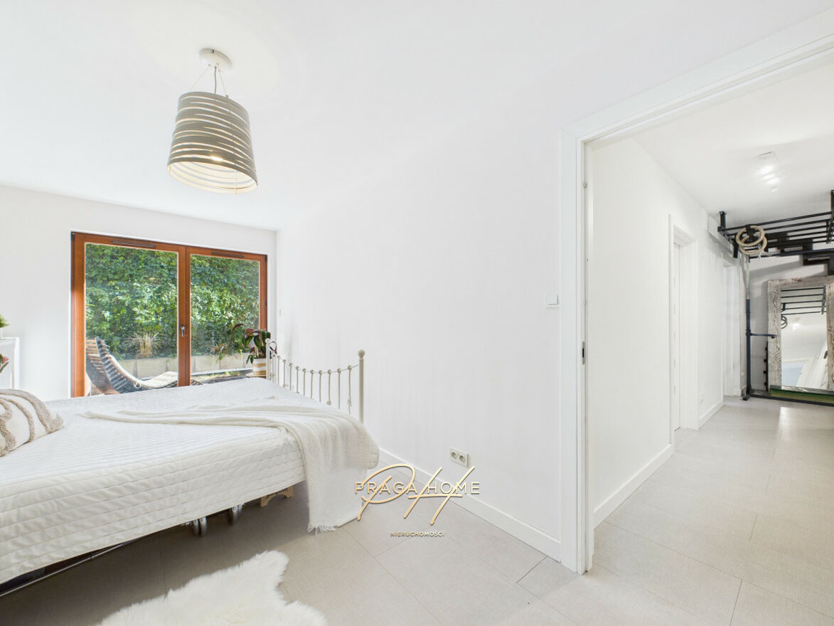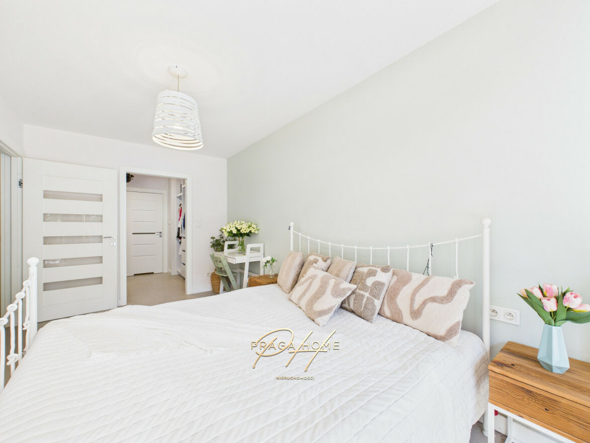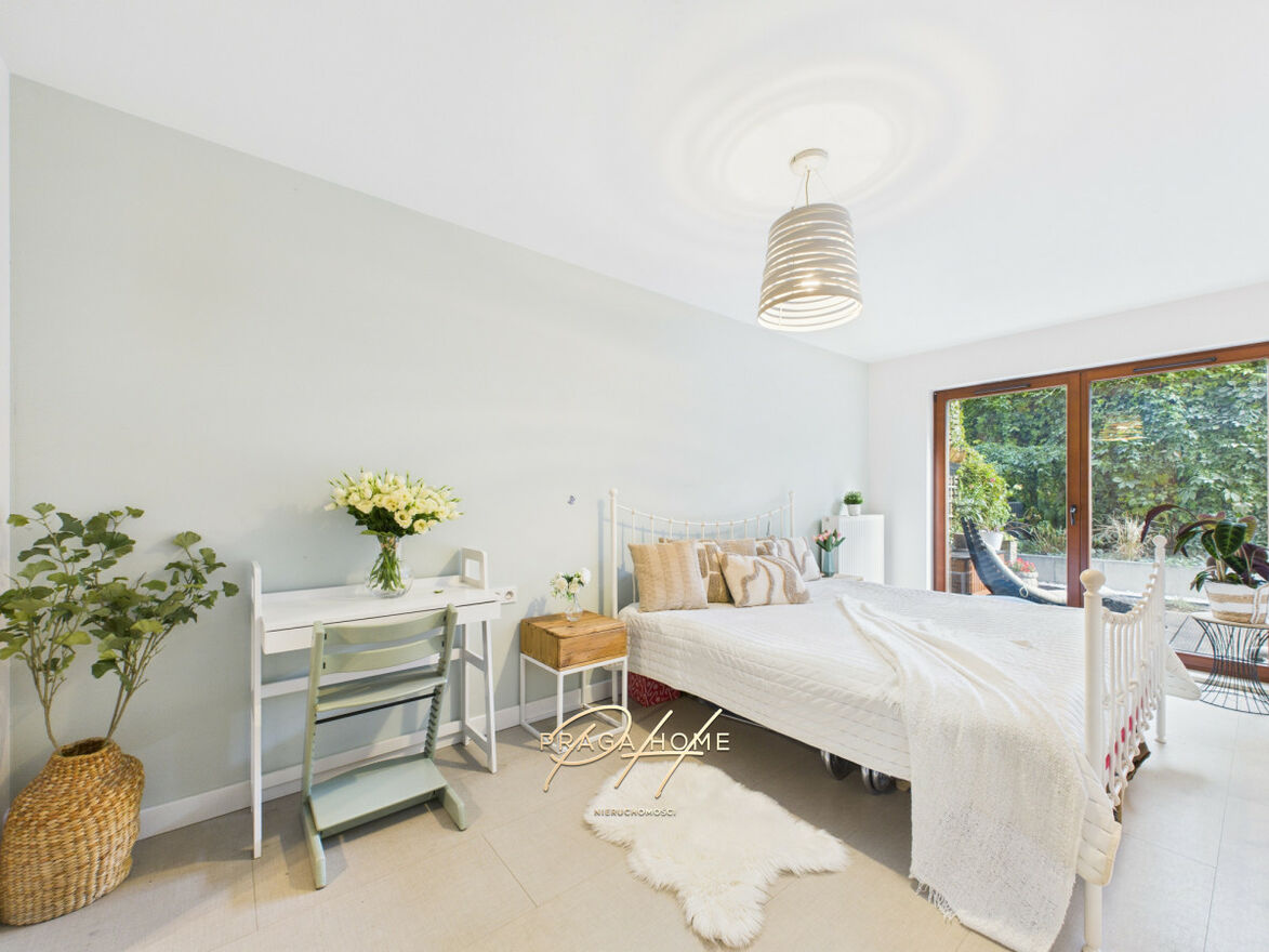 Największa sypialnia posiada własną garderobę oraz prywatną łazienkę, co zapewnia wyjątkowy komfort mieszkańcom. Każda z sypialni ma bezpośrednie wyjście na ogródek przynależny do mieszkania. Ogród został starannie zaaranżowany zielenią, tak by zapewnić pełną prywatność i kameralność.