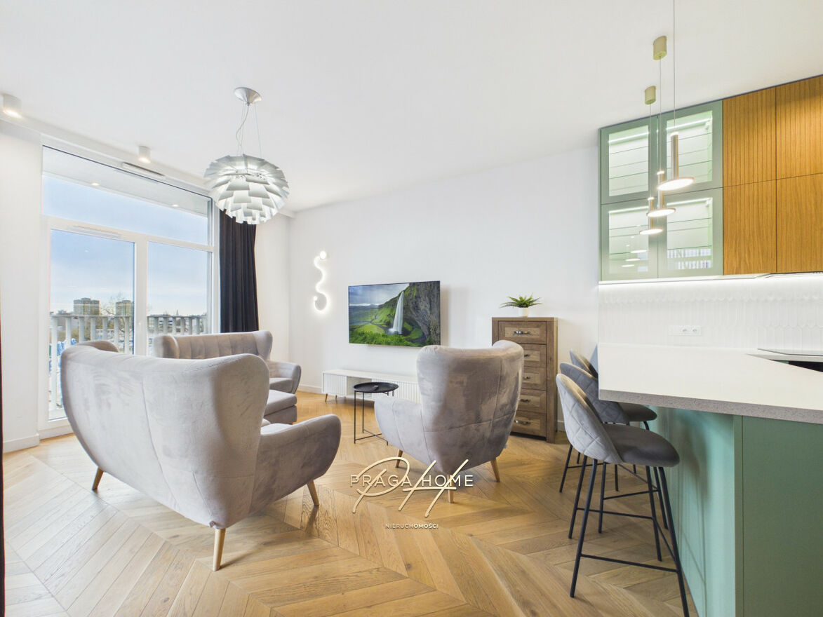 Mieszkanie jest bardzo jasne dzięki trójstronnej ekspozycji zachód, południe, wschód oraz elementy ekspozycji zachodniej), a wysokość pomieszczeń wynosząca 3 metry dodatkowo potęguje poczucie przestrzeni. Całość została wykończona w nowoczesnym, eleganckim stylu, z dbałością o detale - to mieszkanie było projektowane „dla siebie”, co widać w jakości zastosowanych rozwiązań. Lokal jest w pełni wyposażony, klimatyzowany i gotowy do wprowadzenia.