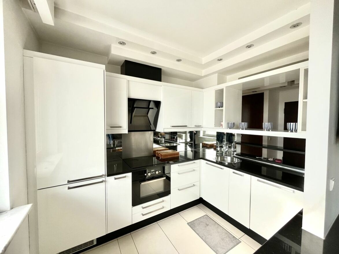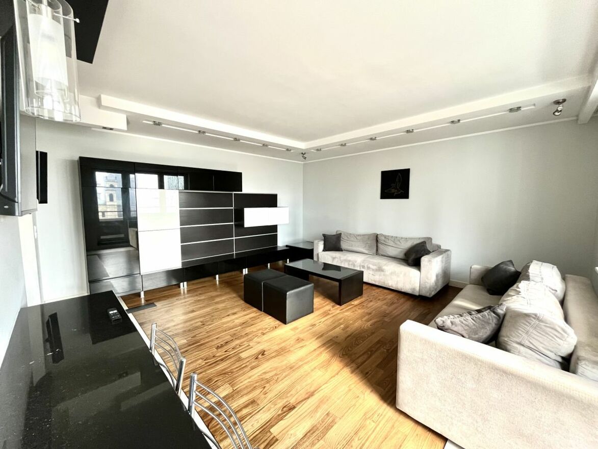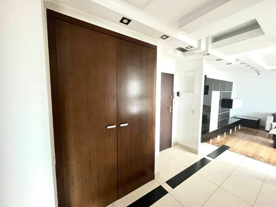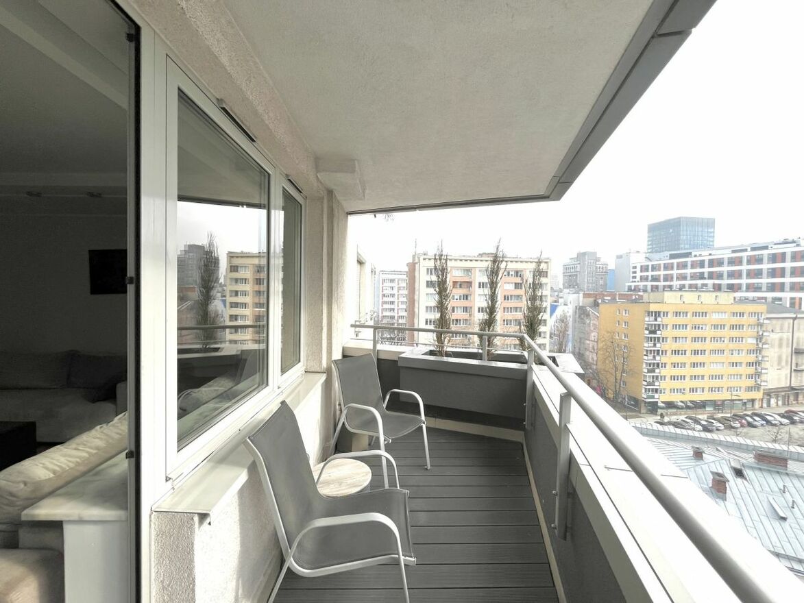 Przestronnego salonu z aneksem kuchennym, oddzielną sypialnią, łazienką (wanna z prysznicem), balkon z pięknym widokiem na pałac kultury. Mieszkanie jest całkowicie umeblowane i wyposażone.