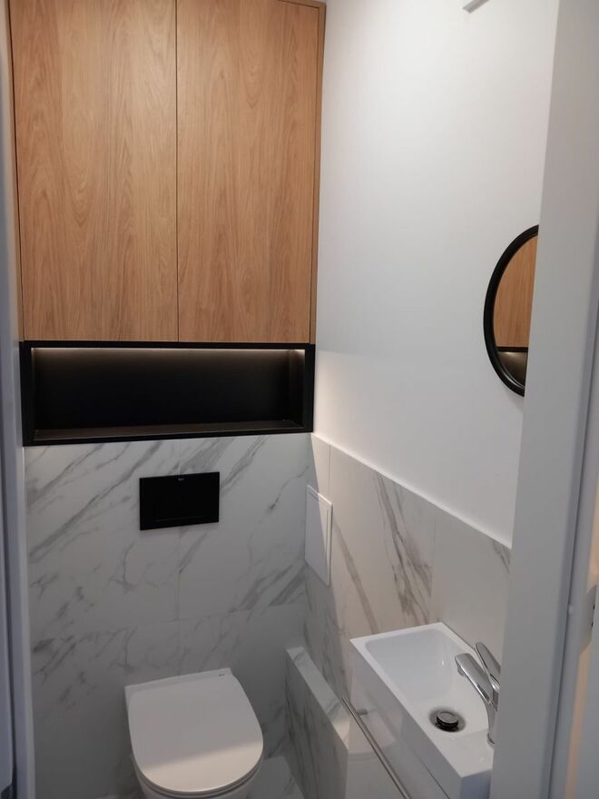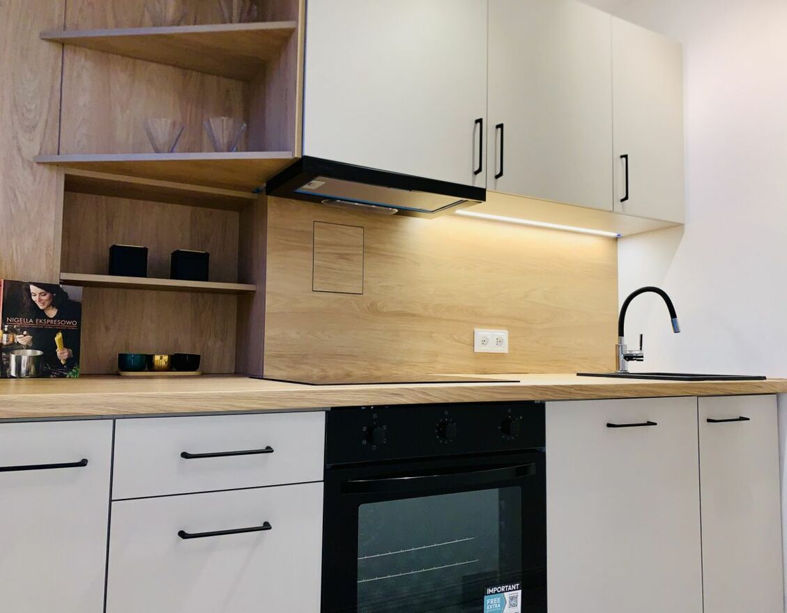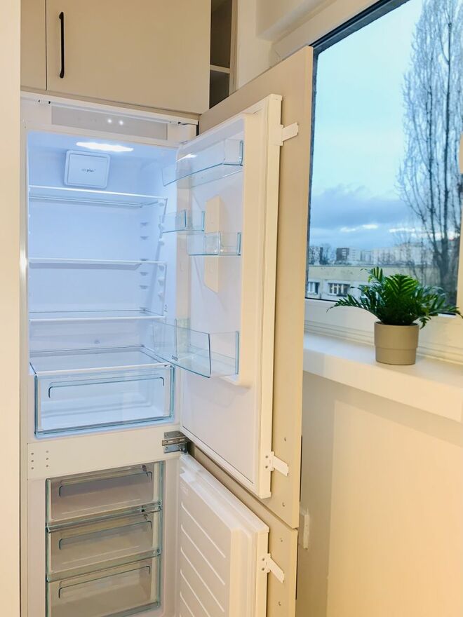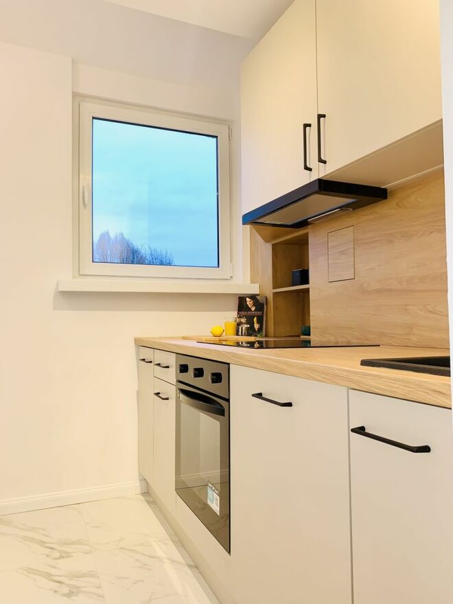 Wykończenie: Wysokiej jakości materiały, zabudowa kuchenna i szafy wykonane na zamówienie przez stolarza, nowe sprzęty AGD (lodówka w zabudowie, płyta elektryczna, piekarnik, zmywarka).