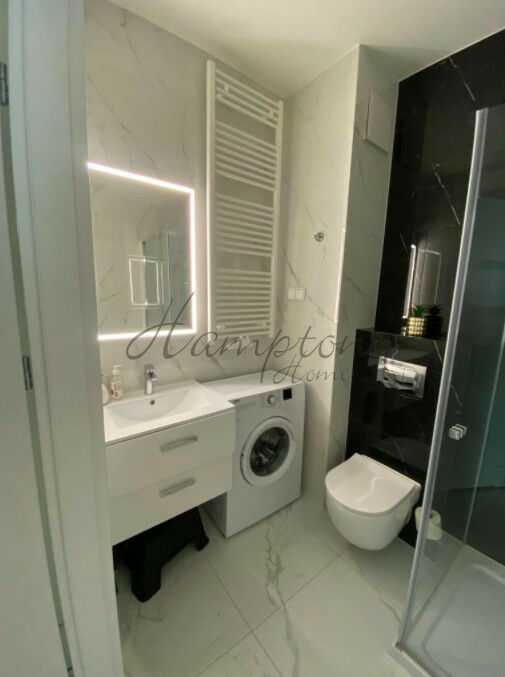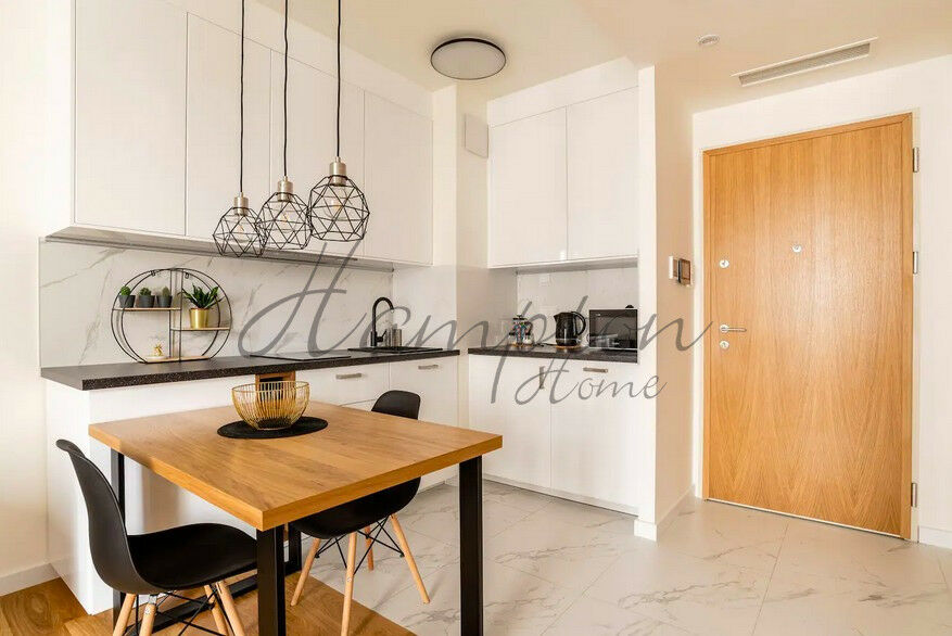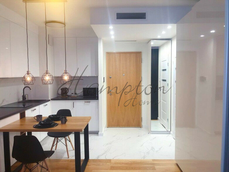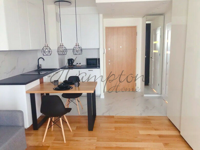 Studio jest nowoczesne, w pełni umeblowane i wyposażone (zmywarka, pralka, lodówka, płyta indukcyjna, smart TV, internet, odkurzacz), dodatkowym atutem jest wielofunkcyjna klimatyzacja.