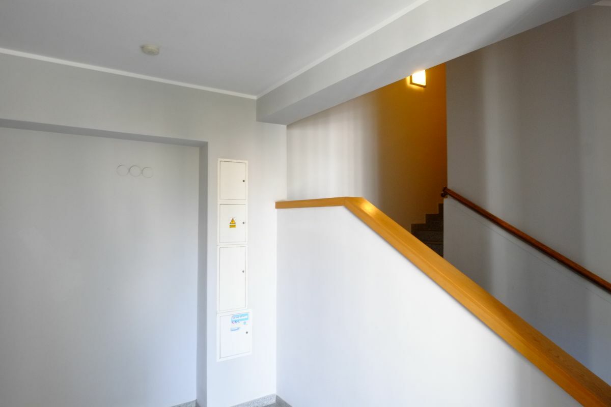 • VI piętro w kamienicy z 1957 r. (okres późnego socrealizmu), budynek z windą