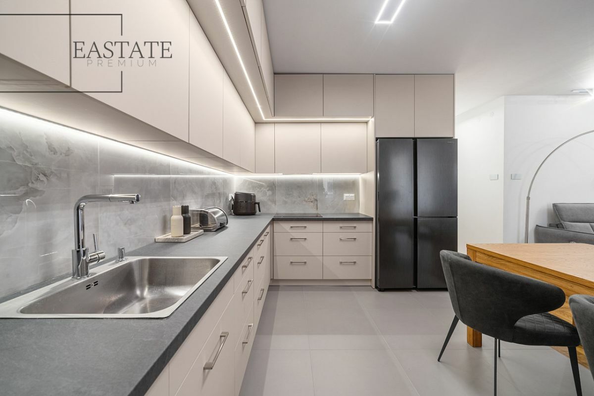 Kuchnia: W pełni wyposażona w wysokiej klasy sprzęt AGD oraz liczne szafki z dużą ilością miejsca do przechowywania. Stylowy design oraz przestronność kuchni sprawiają, że jest to perfekcyjna przestrzeń do gotowania i wspólnego spożywania posiłków.