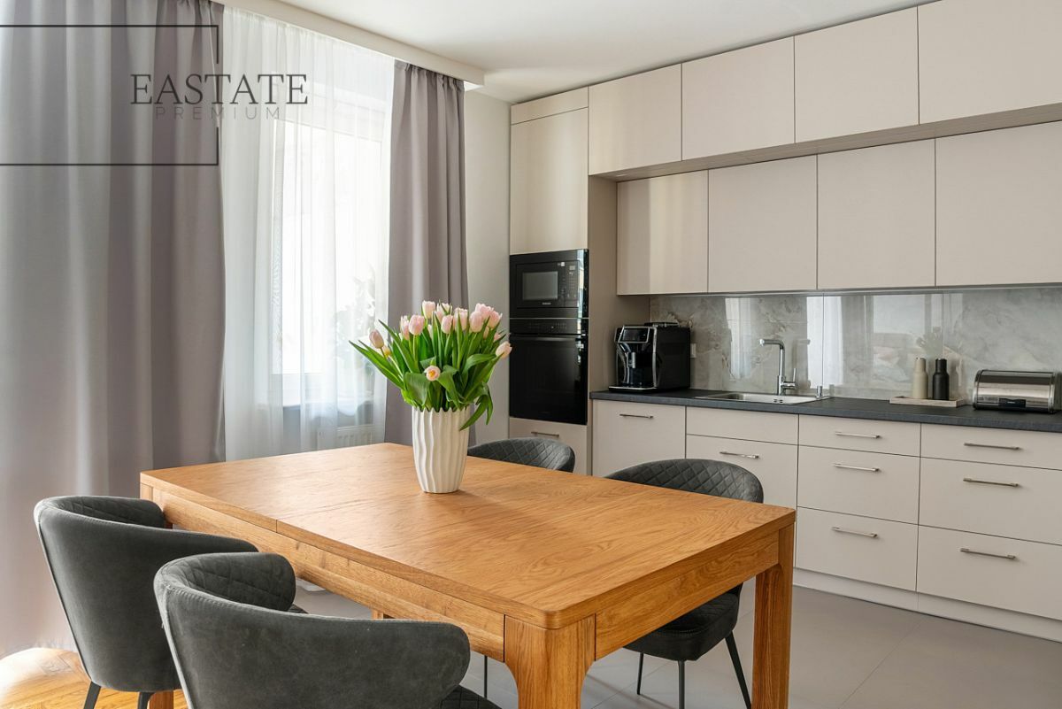 Finishing: High-quality finishing materials, wooden floors, a lighting system controlled by an app, and spacious built-in wardrobes. The apartment has been designed and finished with attention to detail, creating elegant, modern interiors with a cozy atmosphere.