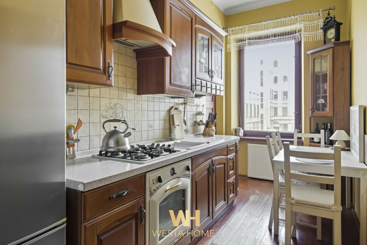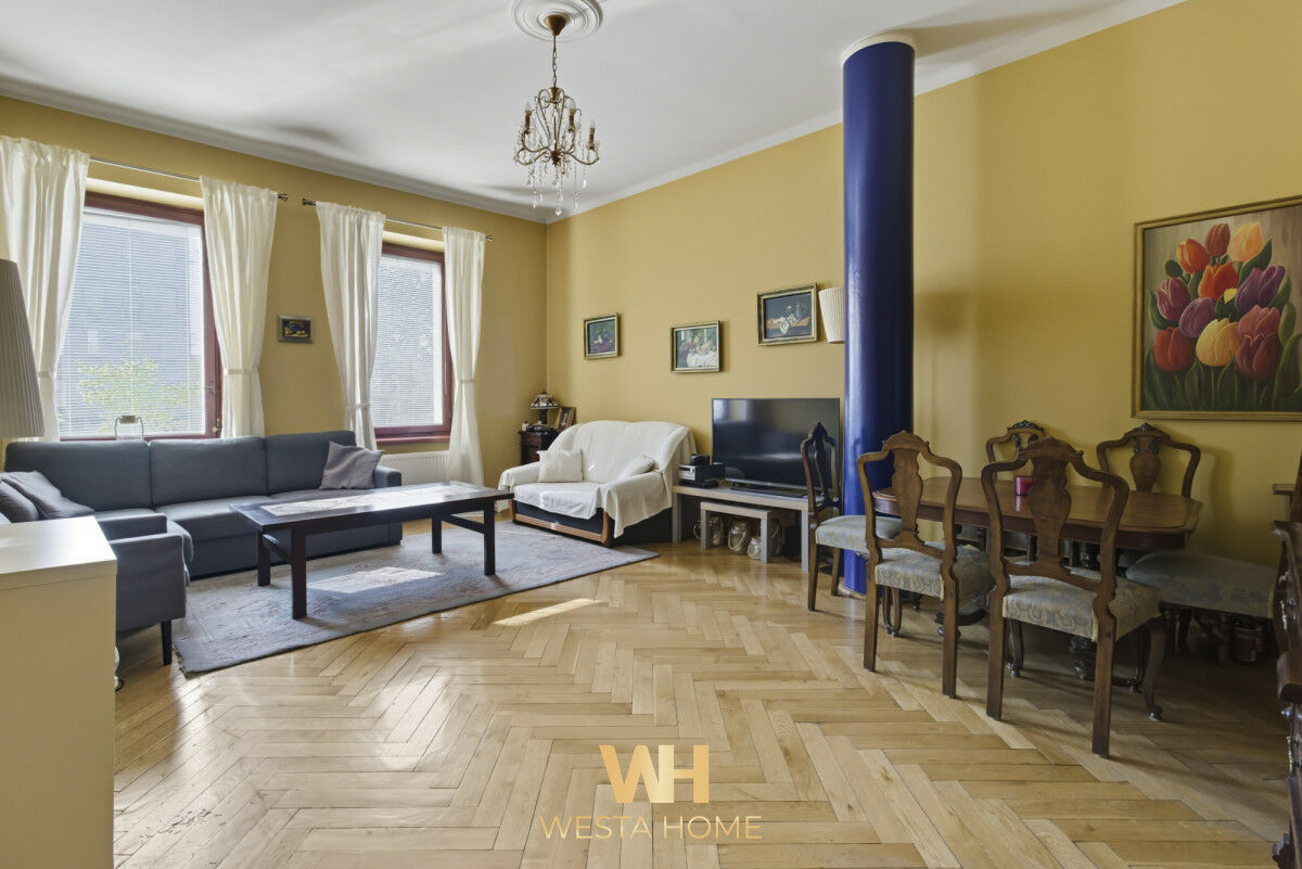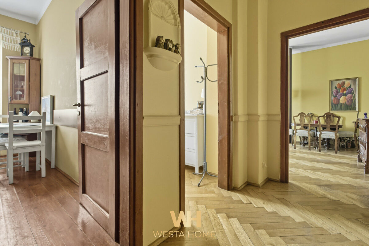 Lokal ma powierzchnię 82 m² i mieści się na pierwszym piętrze. Wysokość pomieszczeń (3,20 m) oraz zachowane oryginalne elementy nadają mu charakter kamienicy z duszą. Budynek przeszedł pełną rewitalizację - wymieniono wszystkie instalacje, zamontowano nową windę, a odrestaurowane duże drewniane okna podkreślają jego przedwojenny styl. W mieszkaniu znajduje się parkiet z dębowej klepki w bardzo dobrym stanie. Zarówno w lokalu, jak i w częściach wspólnych panuje neutralny, przyjemny zapach - rzadko spotykany w starszych kamienicach.