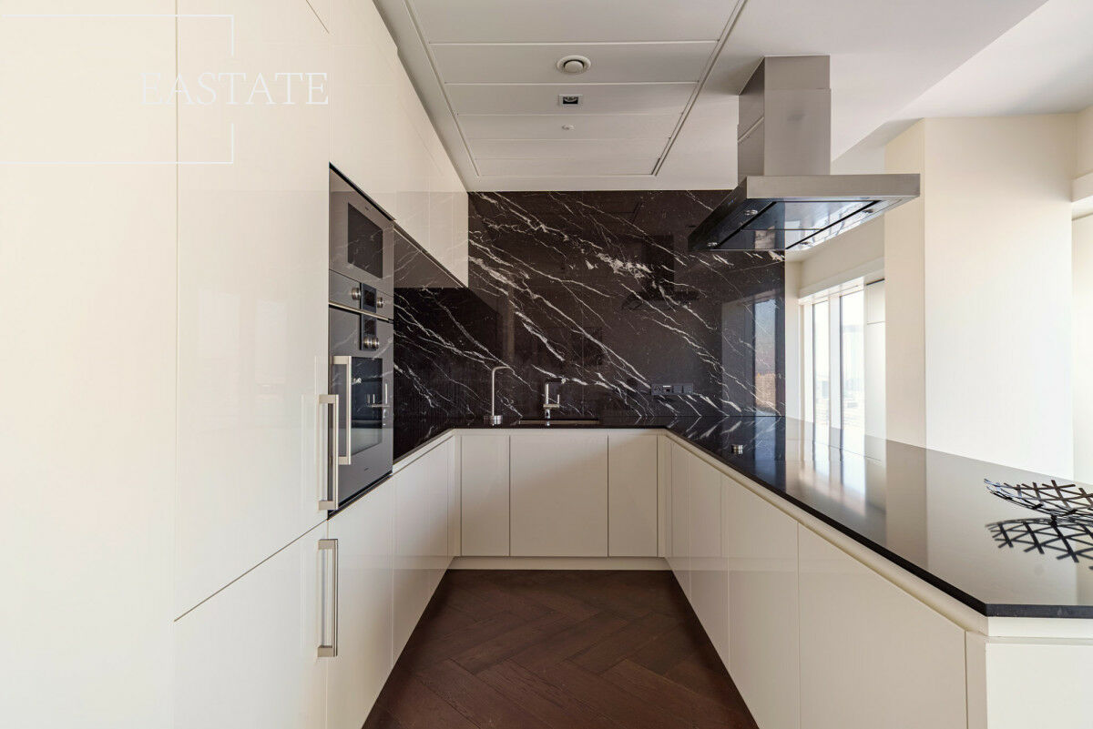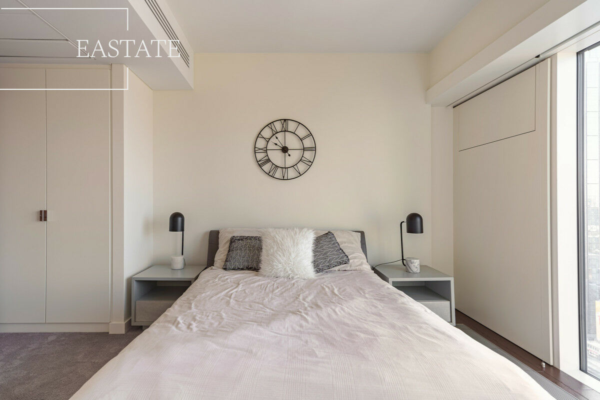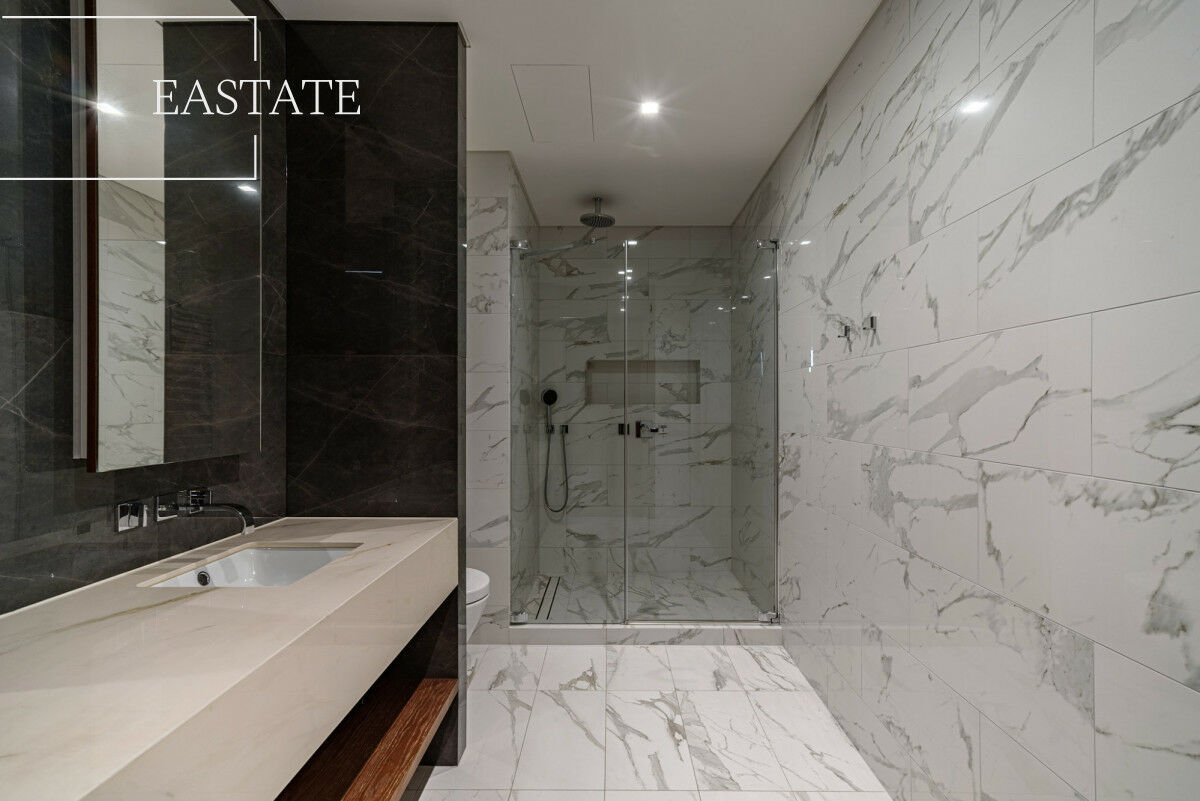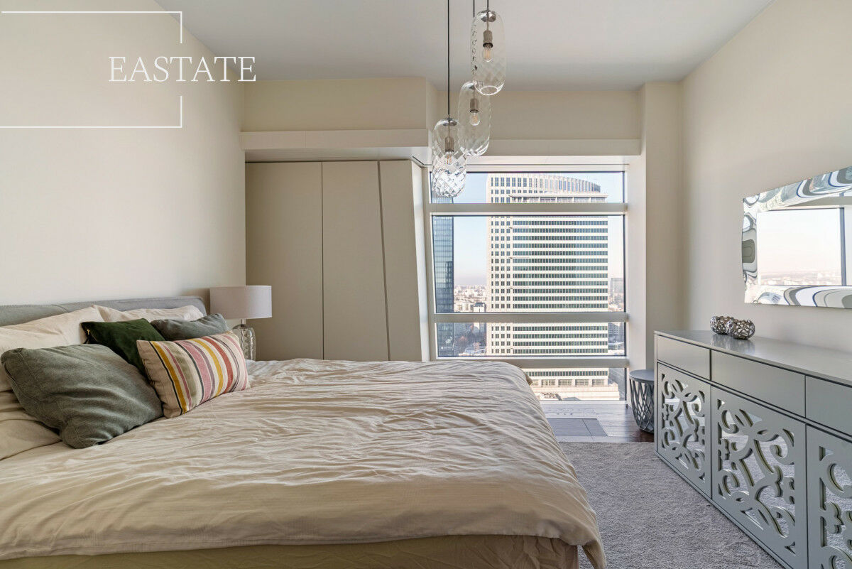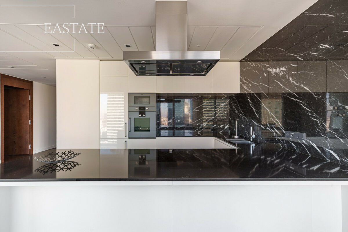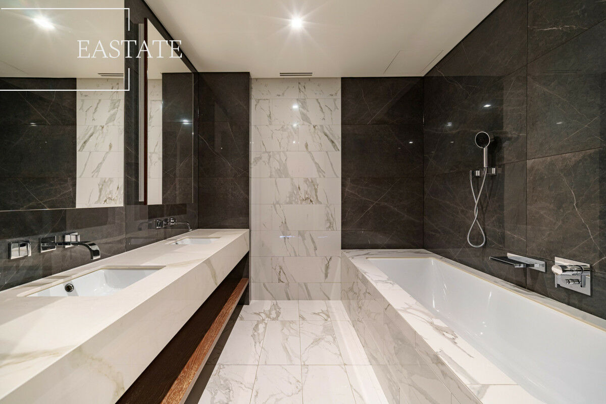 Apartament o powierzchni 170 m² zachwyca nowoczesnym designem, doskonałym doświetleniem oraz spektakularnym panoramicznym widokiem na panoramę miasta.