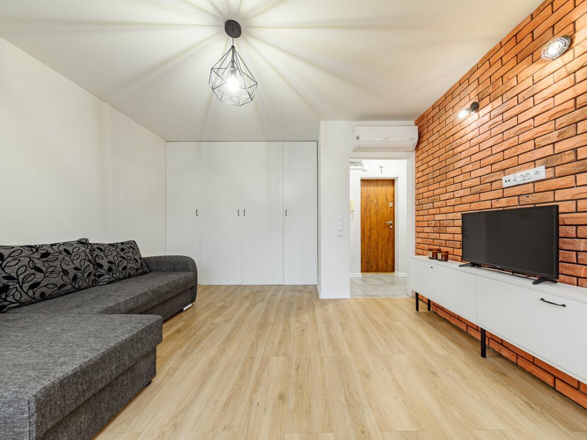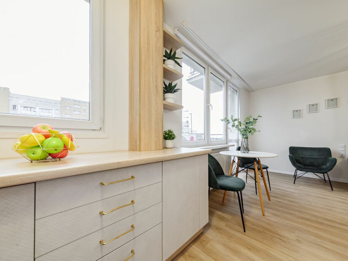Na sprzedaż bardzo jasna i funkcjonalna kawalerka o powierzchni 32,4 m², zlokalizowana przy ul. Krasiczyńskiej 2 w sercu warszawskiego Bródna.