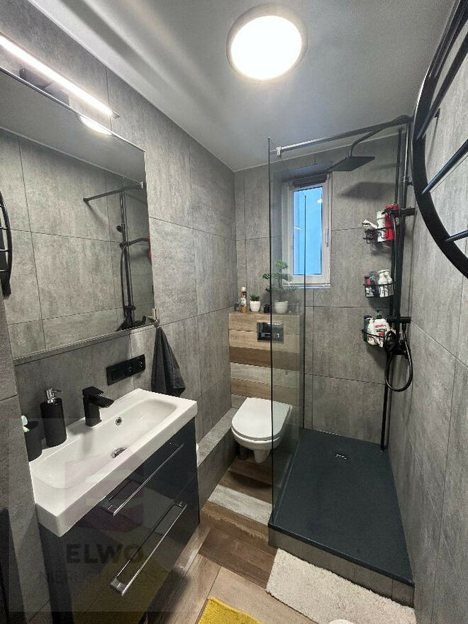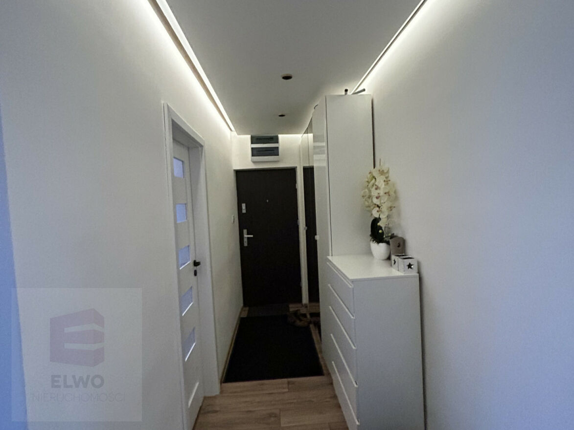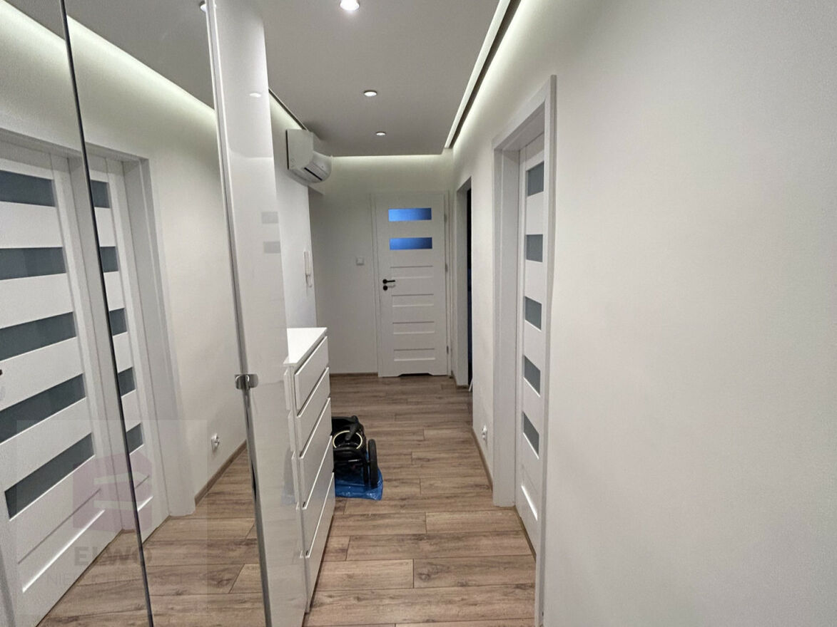 na ścianach położone nowe gładzie, zupełnie nowa łazienka , nowe wysokiej jakości panele, , w przedpokoju podwieszany sufit z oświetleniem ledowym, nowe drzwi wejściowe antywłamaniowe o podwyższonych parametrach, doprowadzony światłowód, nowa klimatyzacji