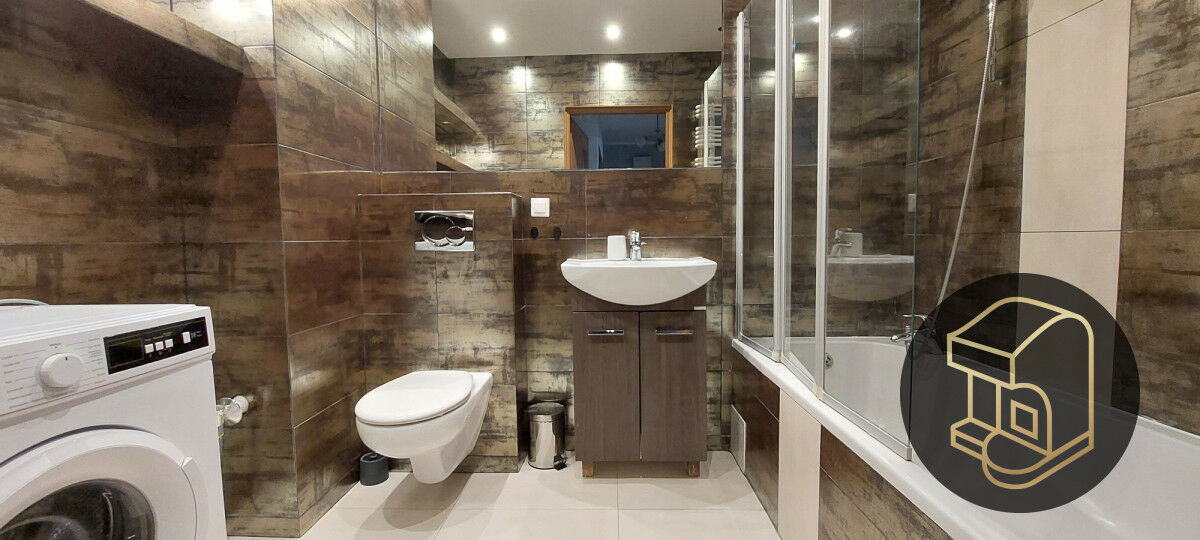 Kuchnia wyposażona jest w lodówkę, piekarnik oraz płytę indukcyjną - bez zastawy kuchennej, co pozwala dopasować ją do własnych potrzeb. W łazience do dyspozycji znajduje się pralka, WC, umywalka oraz wanna z parawanem, dzięki czemu komfortowo skorzystają zarówno miłośnicy długich kąpieli, jak i osoby preferujące szybki prysznic.