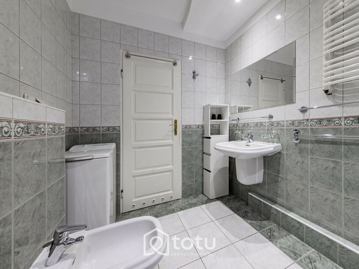 Lokal jest w pełni umeblowany i wyposażony w sprzęt AGD: lodówkę z zamrażarką, kuchenkę, piekarnik, zmywarkę oraz pralkę. Istnieje również możliwość dodatkowego doposażenia mieszkania według potrzeb najemcy.