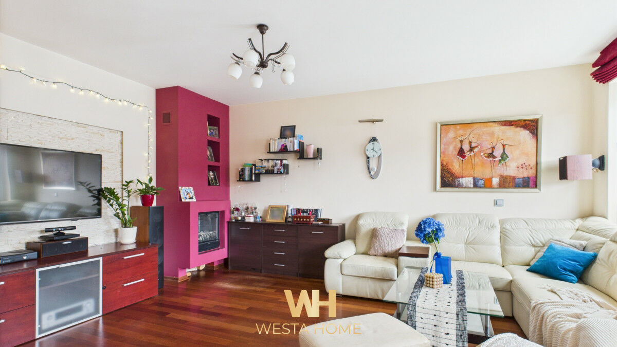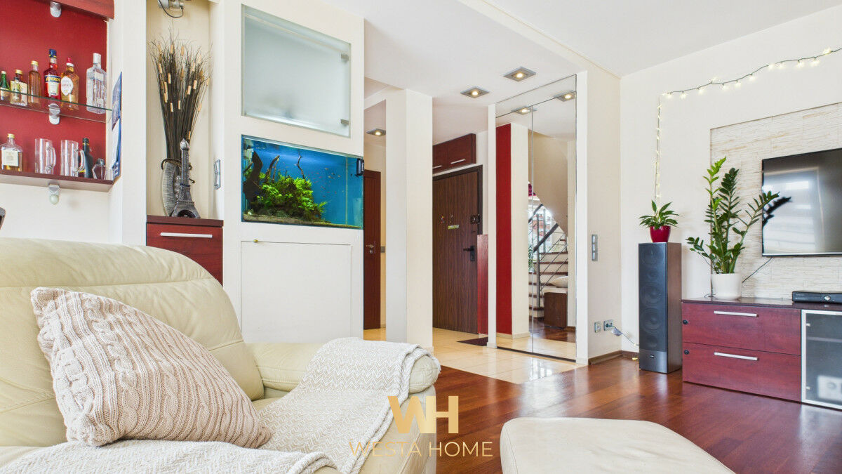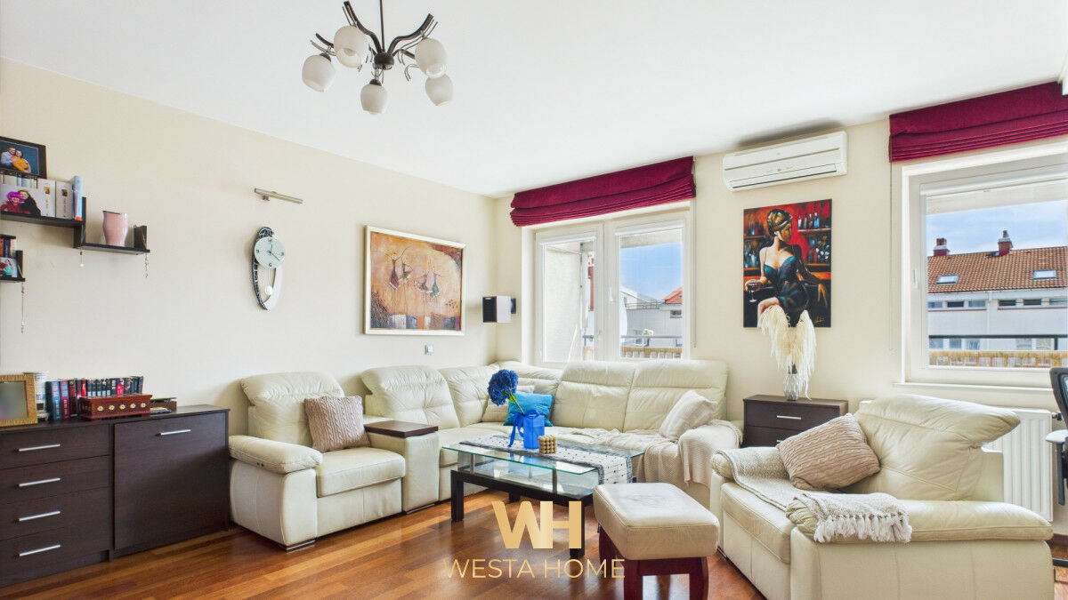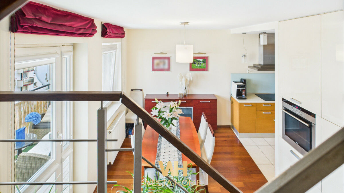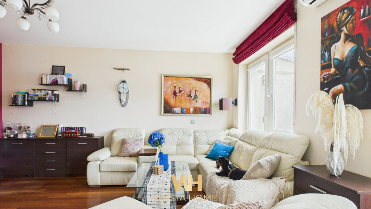 Przestronny, dwupoziomowy apartament położony na warszawskim Natolinie. Nieruchomość charakteryzuje się funkcjonalnym układem, dużą ilością naturalnego światła.