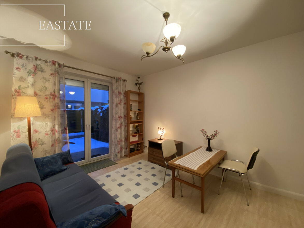 Oferuję na wynajem mieszkanie z ogrodem na bliskim Wawrze z doskonałą komunikacją. Mieszkanie znajduje się na parterze z oknami wychodzącymi na dwie strony.Opis mieszkania: