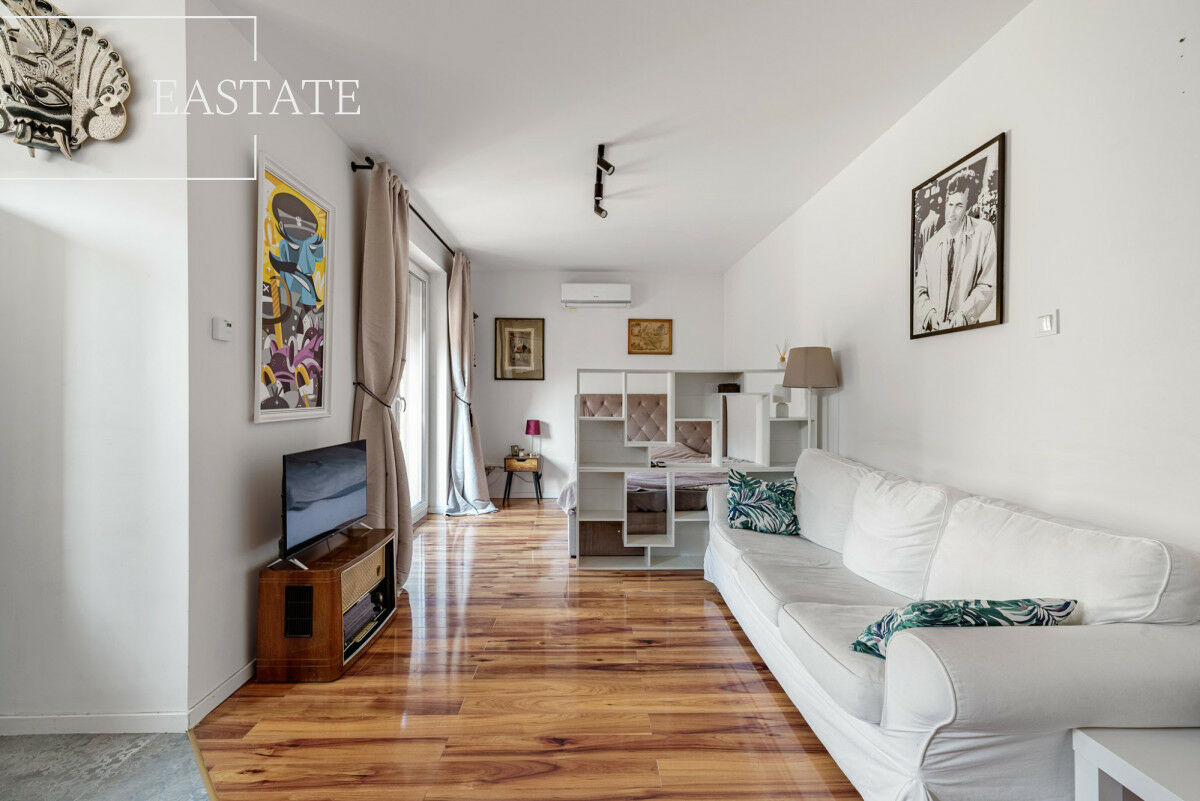 Na sprzedaż wyjątkowa kawalerka o powierzchni 30 m² typu open space, położona na parterze kameralnego, nowoczesnego budynku z 2020 roku w prestiżowej części Wilanowa Królewskiego - przy cichej, spokojnej ulicy w otoczeniu zieleniNajwiększy atut - prywatny ogród 125 m²