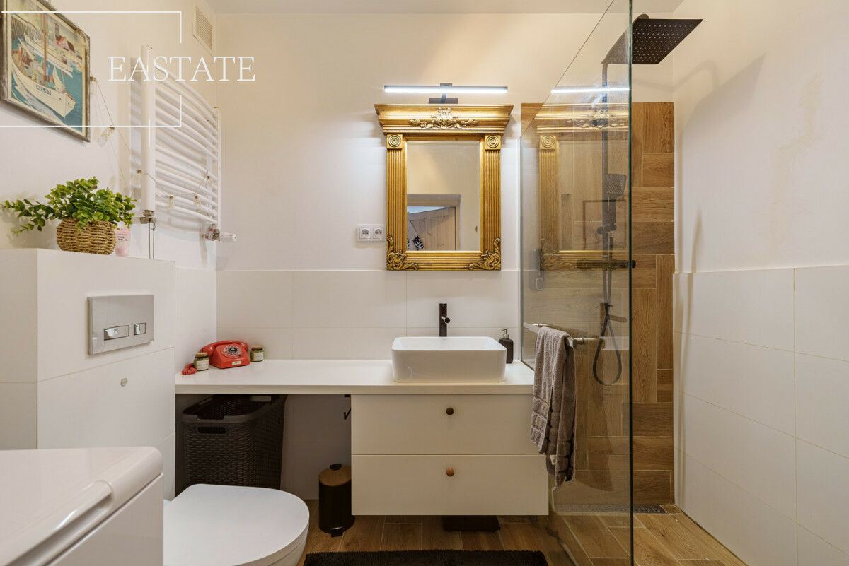 Wnętrze jest bardzo dobrze doświetlone, a dzięki przemyślanemu rozkładowi sprawia wrażenie większego niż wskazuje metraż. Pełna izolacja od sąsiadów zapewnia ciszę i prywatność.