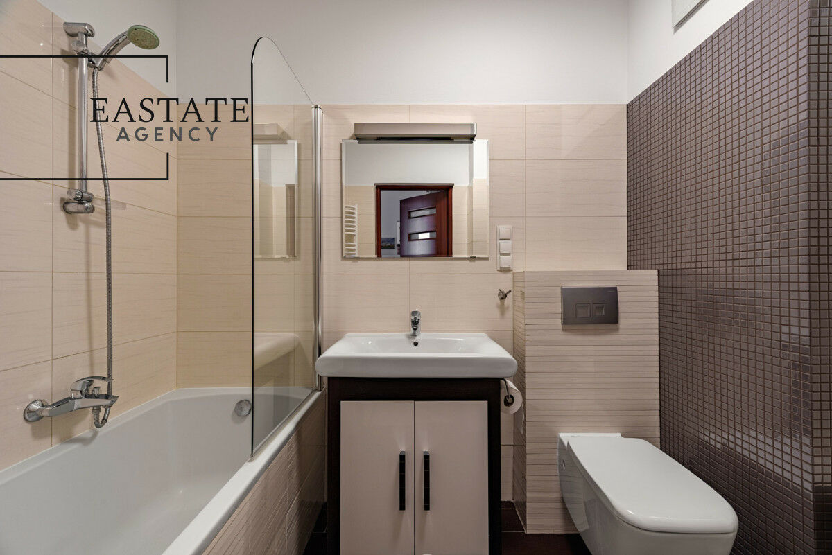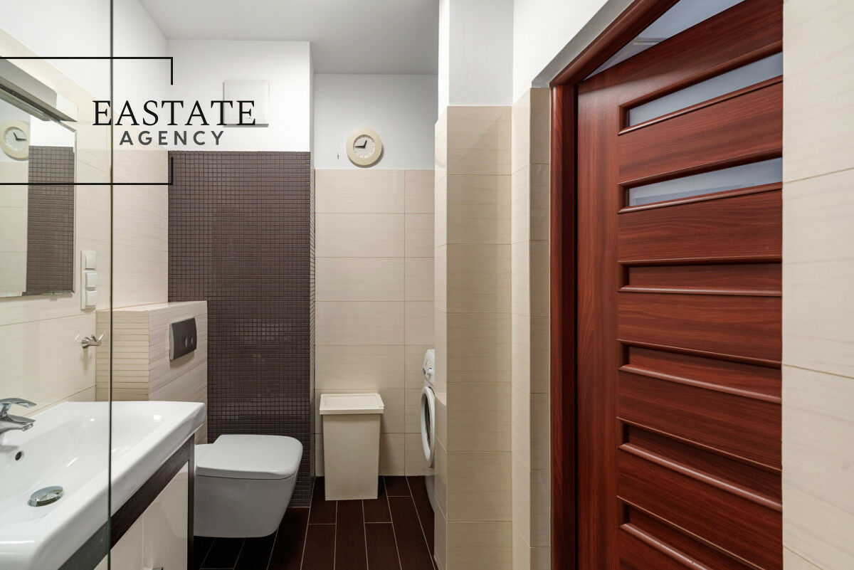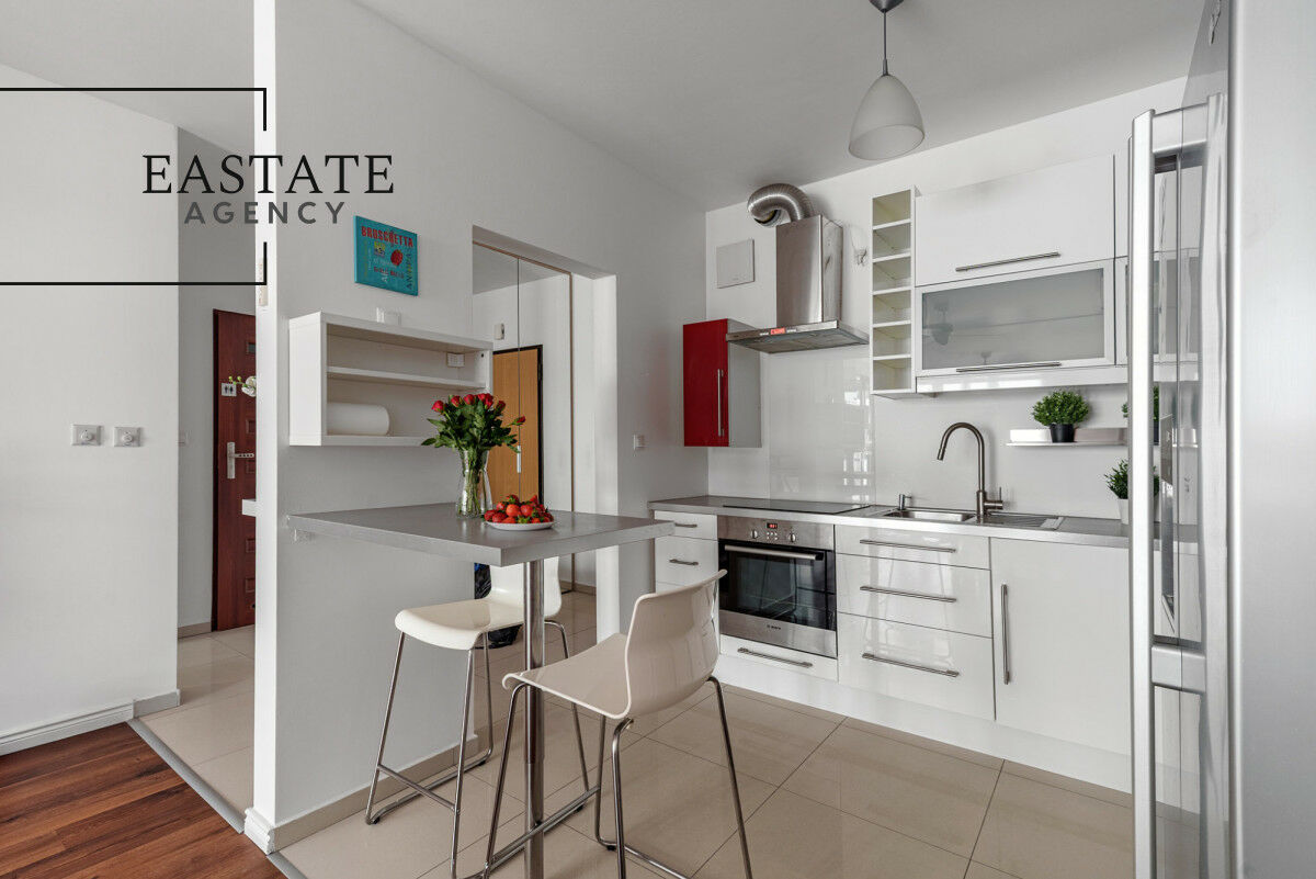 - pełne wyposażenie w sprzęt AGD: lodówka, płyta elektryczna, piekarnik, zmywarka, pralka,