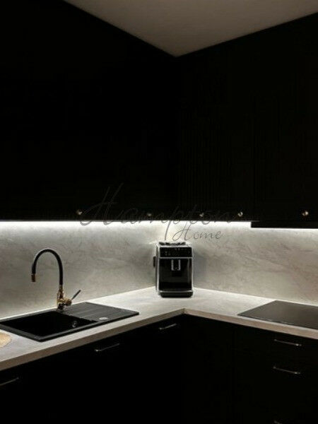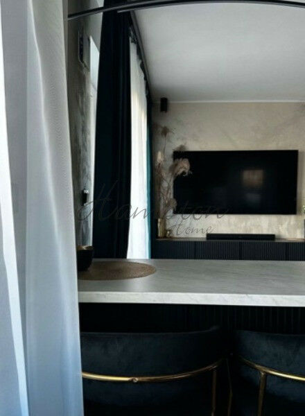 Kuchnia: W pełni wyposażona, nowoczesna, z najwyższej jakości sprzętem AGD. Czarne fronty szafek z białymi blatami i złotymi uchwytami tworzą luksusowy efekt. Łazienka: Jasna i funkcjonalna. Biało-złote wykończenie nadaje jej elegancji i stylu. Wygodna kabina prysznicowa, wolno stojąca wanna, designerska umywalka oraz najwyższej jakości armatura.