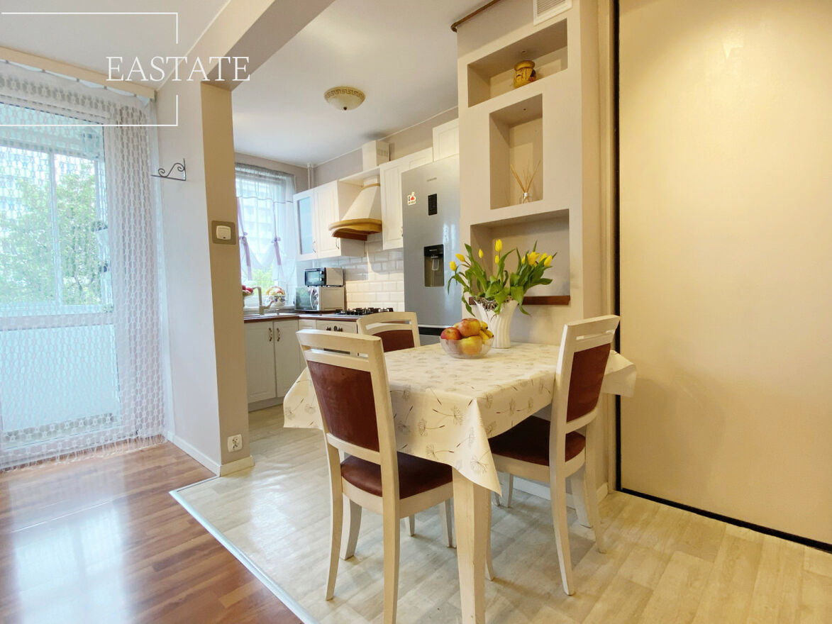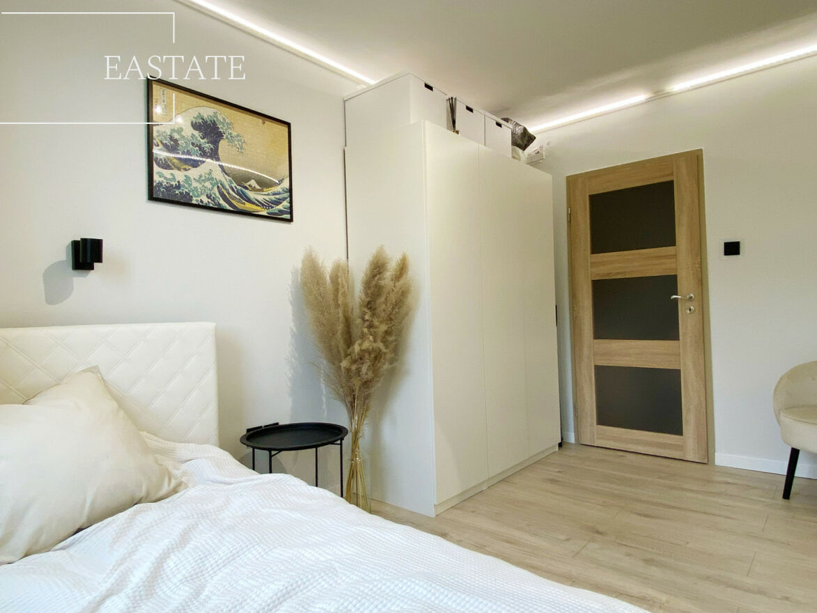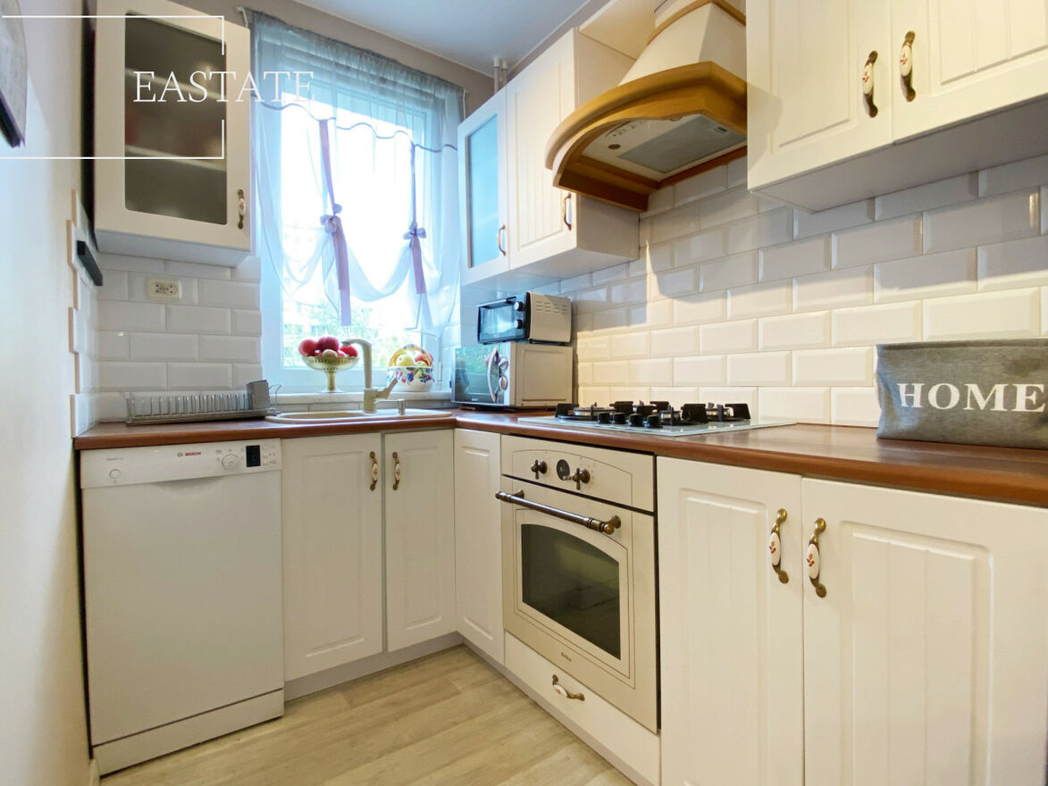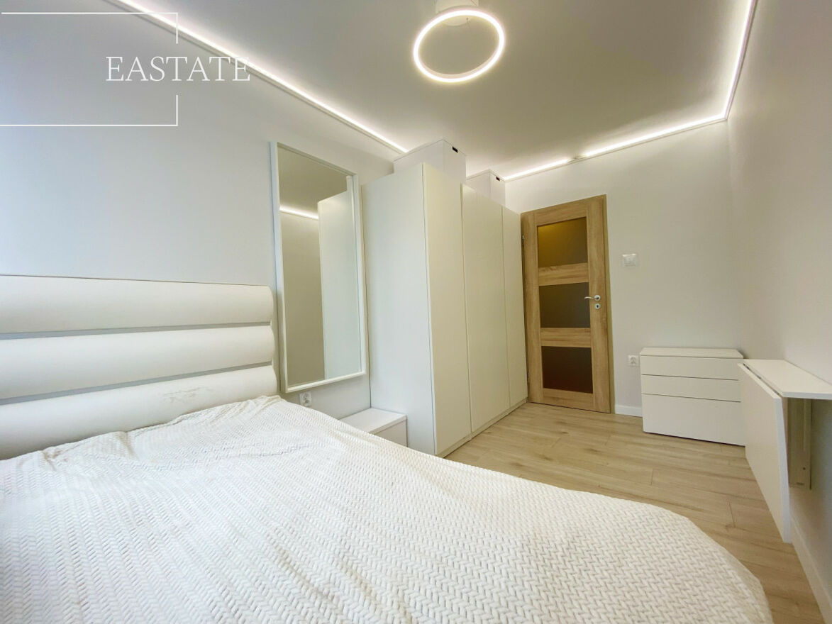 Całe mieszkanie jest w pełni umeblowane i wyposażone. W kuchni lodówko-zamrażarka, piekarnik, kuchenka, pralka i zmywarka. Ponadto w salonie znajduje się szafa wnękowa oraz 2 wygodne kanapy a także stół z krzesłami. W pierwszej sypialni łóżko oraz szafa, w drugiej komoda, szafa oraz podwójne łóżko, w trzeciej natomiast toaletka, komoda i podwójne łóżko.