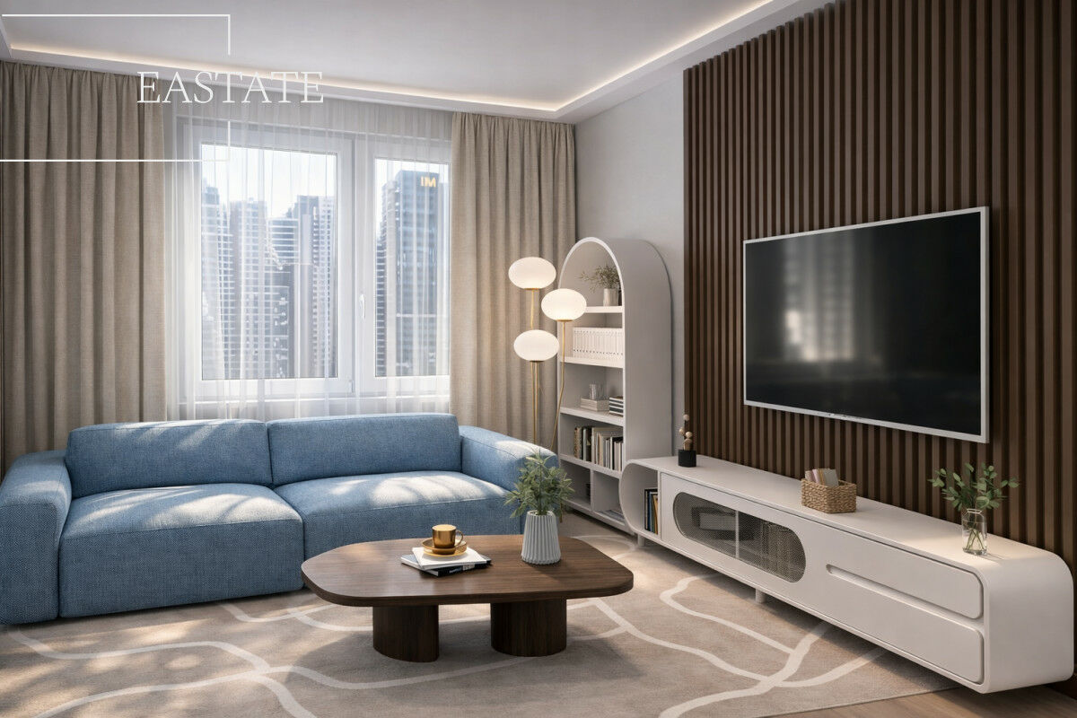 Mieszkanie znajduje się w spokojnej okolicy przyjaznej mieszkańcom, w otoczeniu miejskiej zieleni. W odległości 5 min pieszo od mieszkania znajduje się stacja metra Młynów, co pozwala na szybki dostęp do każdej części Warszawy. Po drugiej stronie ulicy rozciąga się piękny park. W pobliżu dostępność wszelkich punktów usługowych: apteka, piekarnia, kawiarnie i inne punkty usługowe.