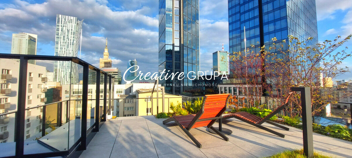 Nowy apartament w centrum miasta czeka na pierwszego najemcę! Mieszkanie idealne dla singla lub pary szukających cichej i bezpiecznej enklawy w nowoczesnej, prestiżowej lokalizacji. Gdzie poza prywatną loggią (12m2) można skorzystać z ogromnego, zielonego tarasu na dachu budynku z widokiem m.in. na Pałac Kultury i Nauki.Mieszkanie o powierzchni 35.50m2 składa się z: