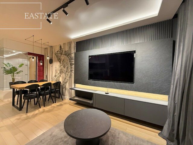 Mieszkanie zostało zaprojektowane przez architekta, z dbałością o funkcjonalność oraz estetykę. Wnętrza wykończone są w wysokim standardzie, z wykorzystaniem mebli wykonywanych na zamówienie oraz wysokiej klasy sprzętu AGD.
