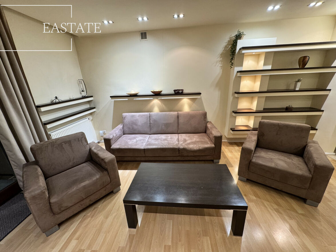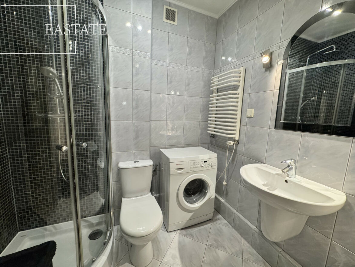 The apartment consists of a spacious living room with access to a balcony, furnished with comfortable seating and practical storage solutions. The separate, bright kitchen with a window offers plenty of workspace. The bedroom has been designed functionally and includes a desk for work and a chest of drawers. The bathroom is equipped with a shower cabin and a washing machine. The hallway features built-in wardrobes near the entrance, and on both sides of the passage there are two deep recessed wardrobes, creating a practical walk-in closet. The apartment is fully furnished and equipped with essential appliances, including a fridge, hob, washing machine, and TV. The layout is functional, clearly separating the living and private zones, which provides a sense of space and real comfort for everyday living. The apartment is quiet and cozy.