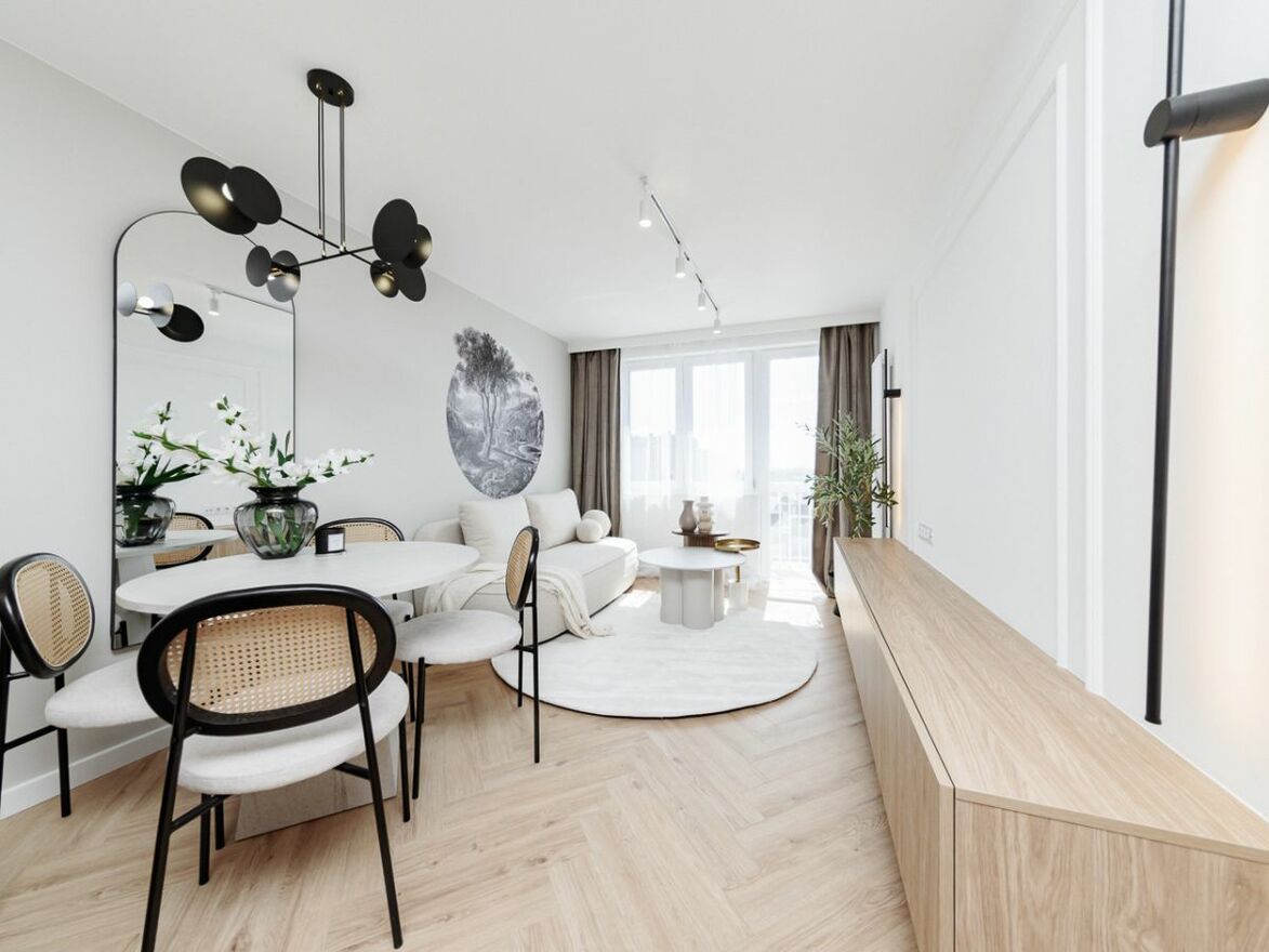 Oferuję na sprzedaż mieszkanie w zadbanym budynku na Warszawskim śródmieściu o powierzchni 53,9 m2, składające się z salonu z aneksem kuchennym, 2 pokoi, łazienki z WC i przedpokoju.Mieszkanie przeszło generalny remont pod okiem znanej architekt wnętrz.