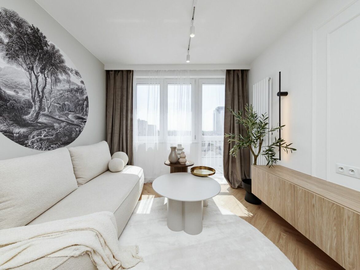 Mieszkanie mieści się przy ulicy Siennej 85 na Warszawskiej bliskiej Woli.